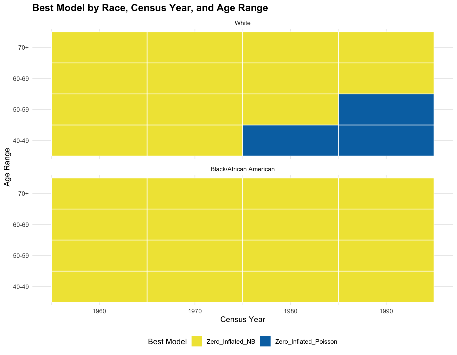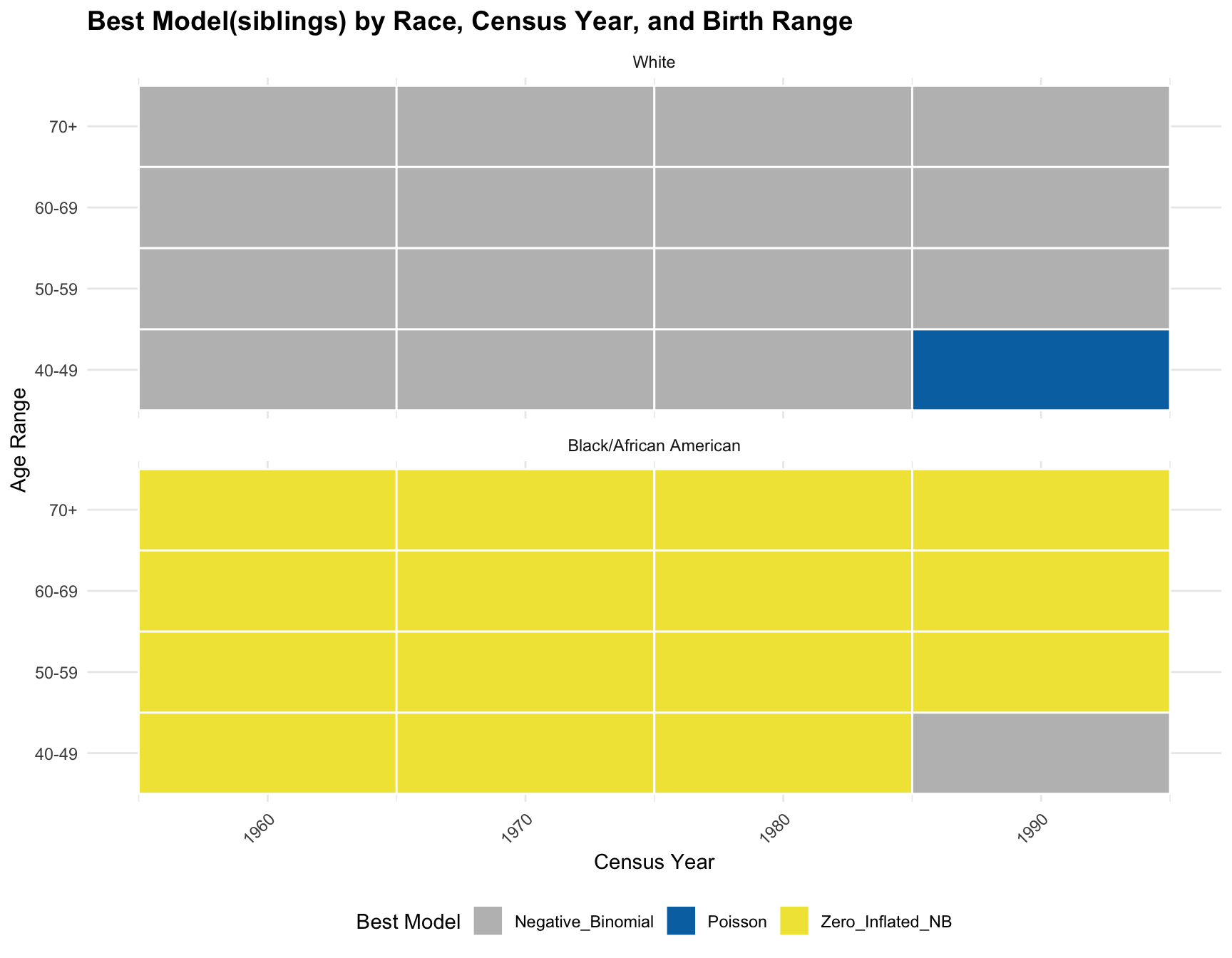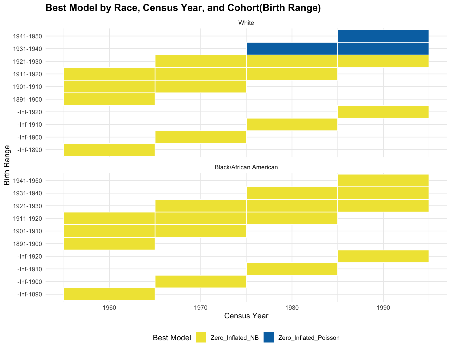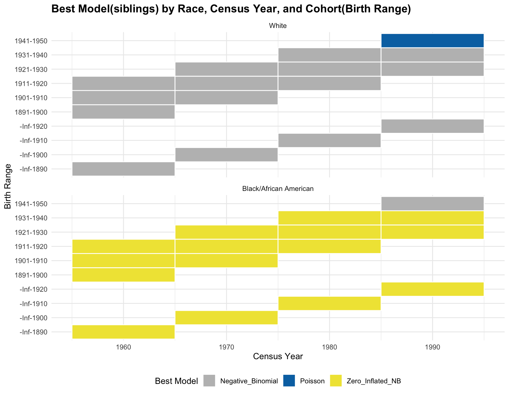title = "Best Model(siblings) by Race, Census Year, and Cohort(Birth Range)",