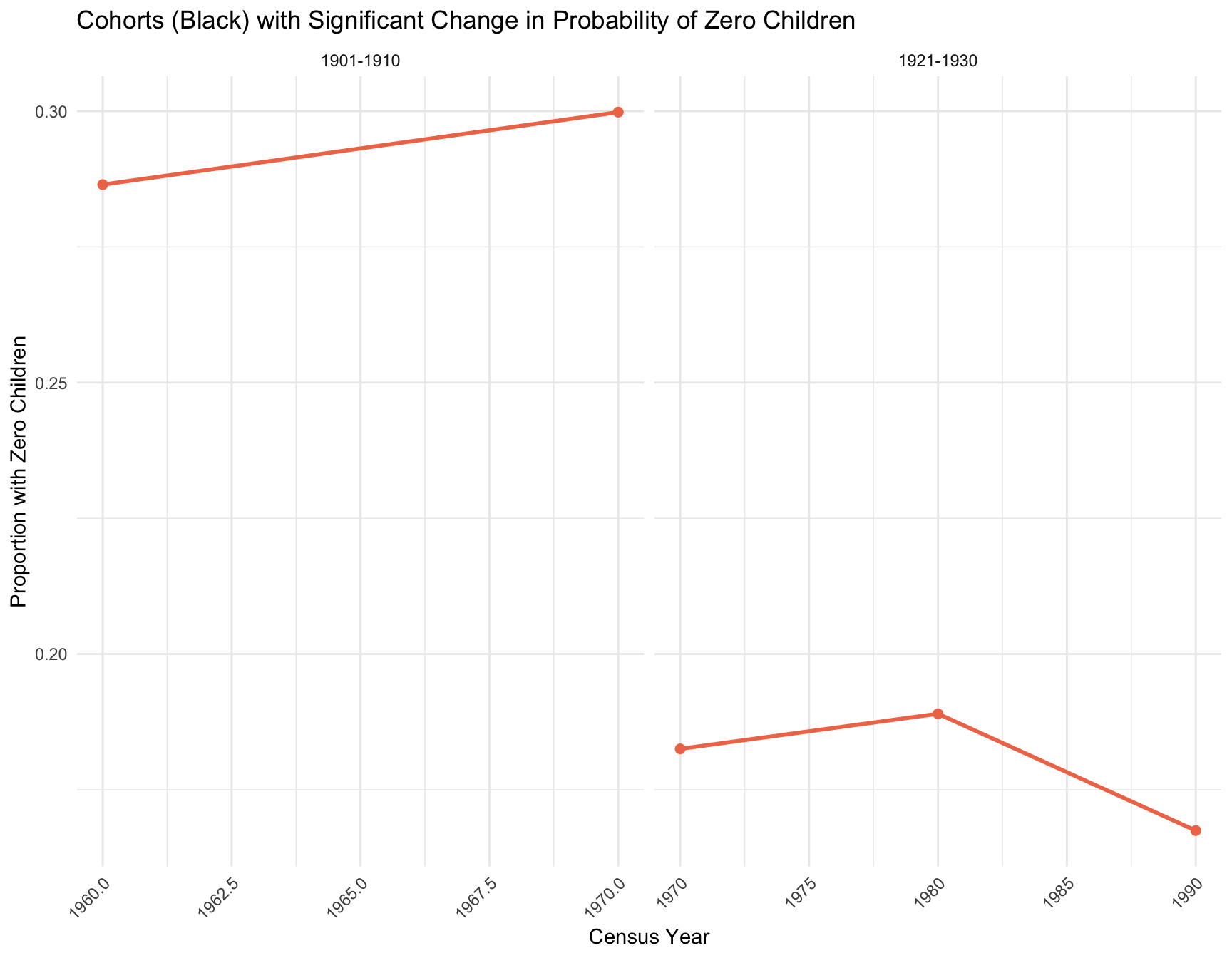 RESULT: The table shows that only the cohort 1921-1930 has significant change in probability of individuals with zero siblings in black population.
