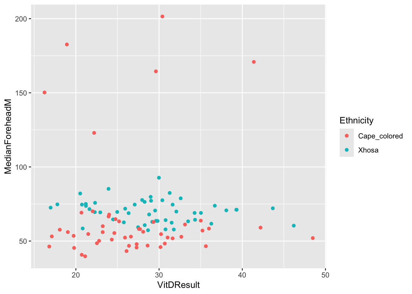 annotate("text", x = 1.5, y = max(summer_data$MedianForeheadM),