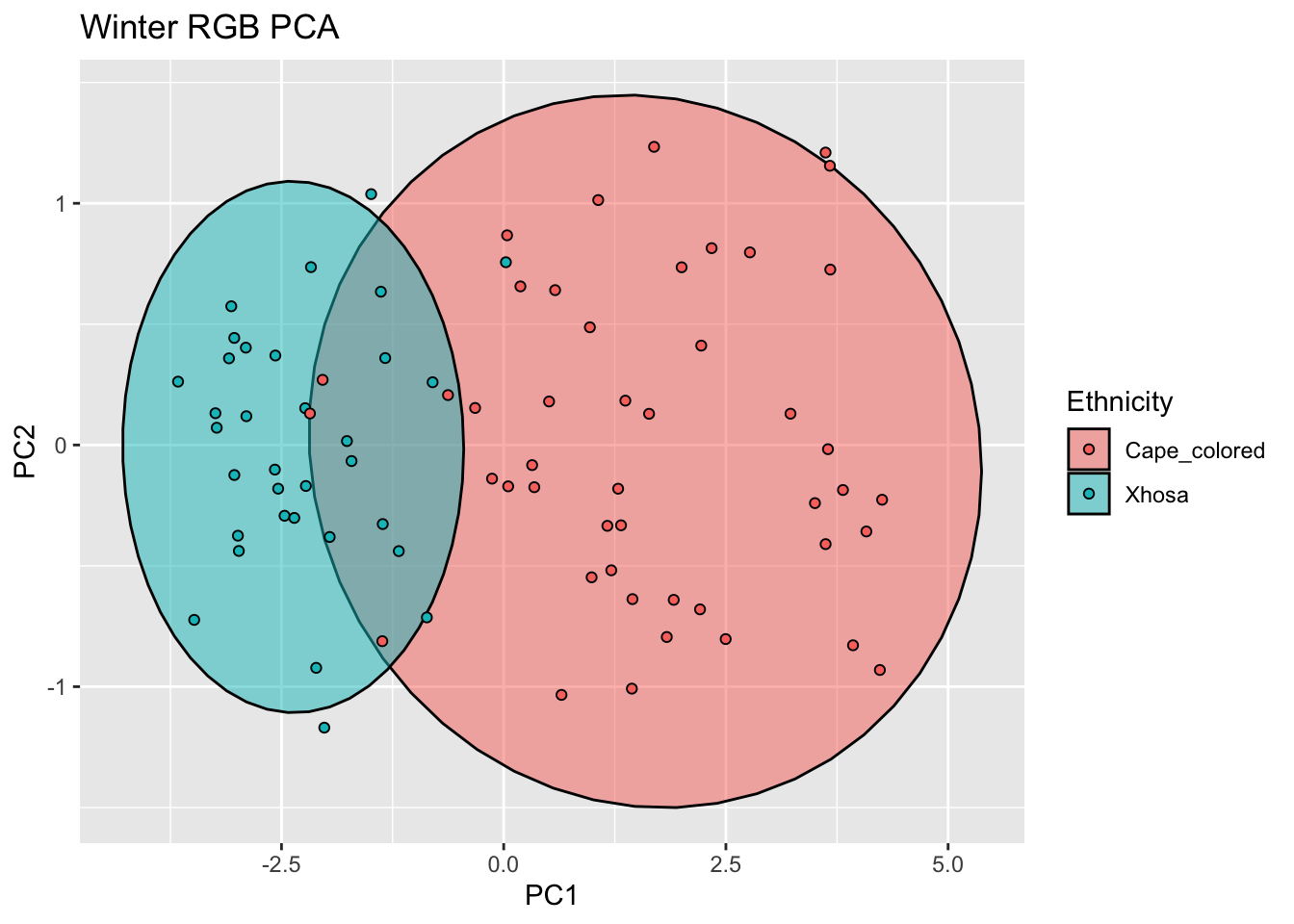 winterG <- t.test(MedianForeheadG ~ Ethnicity, data = winter_data)