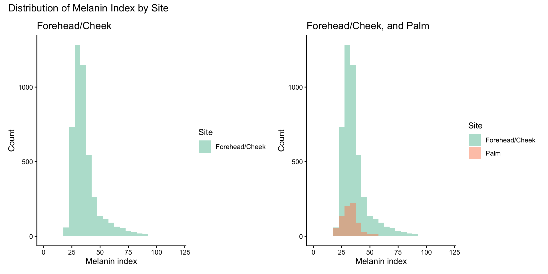 FACE site refers to Forehead and Cheek, while PALM site refers to the Palm of the hand.