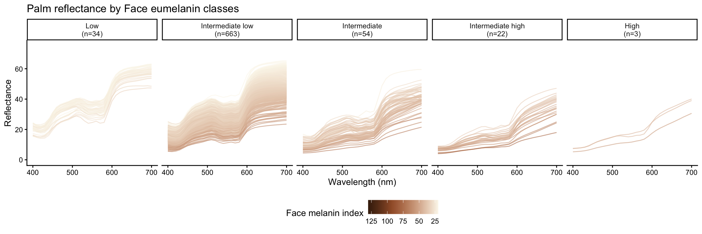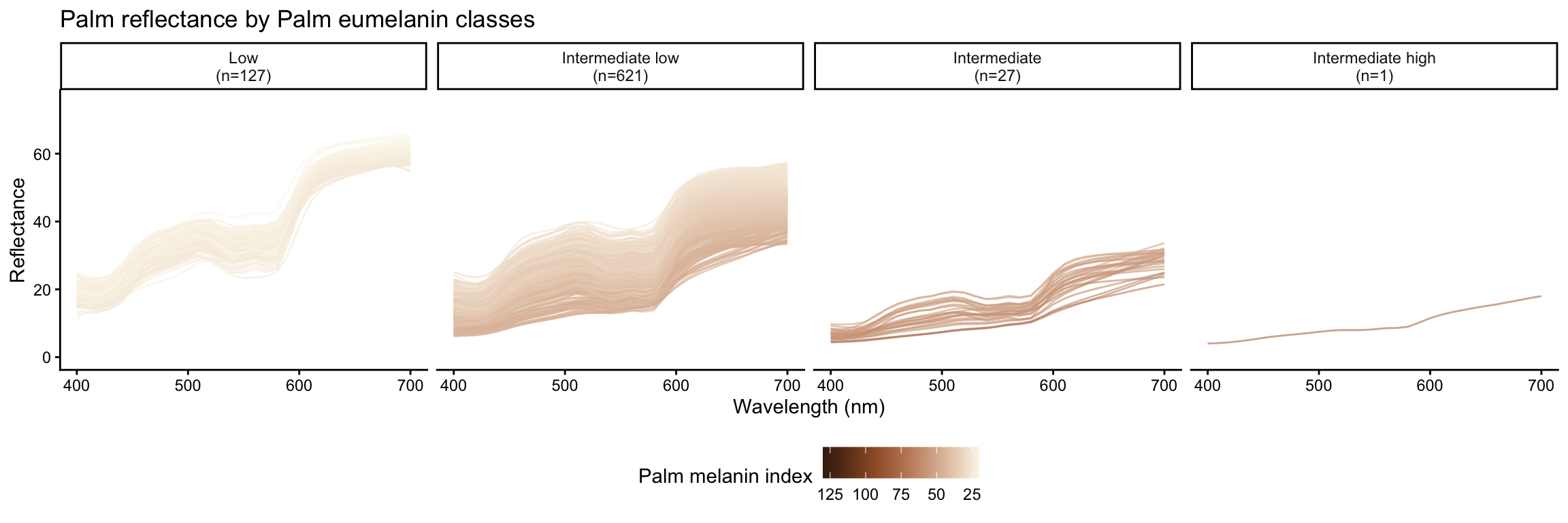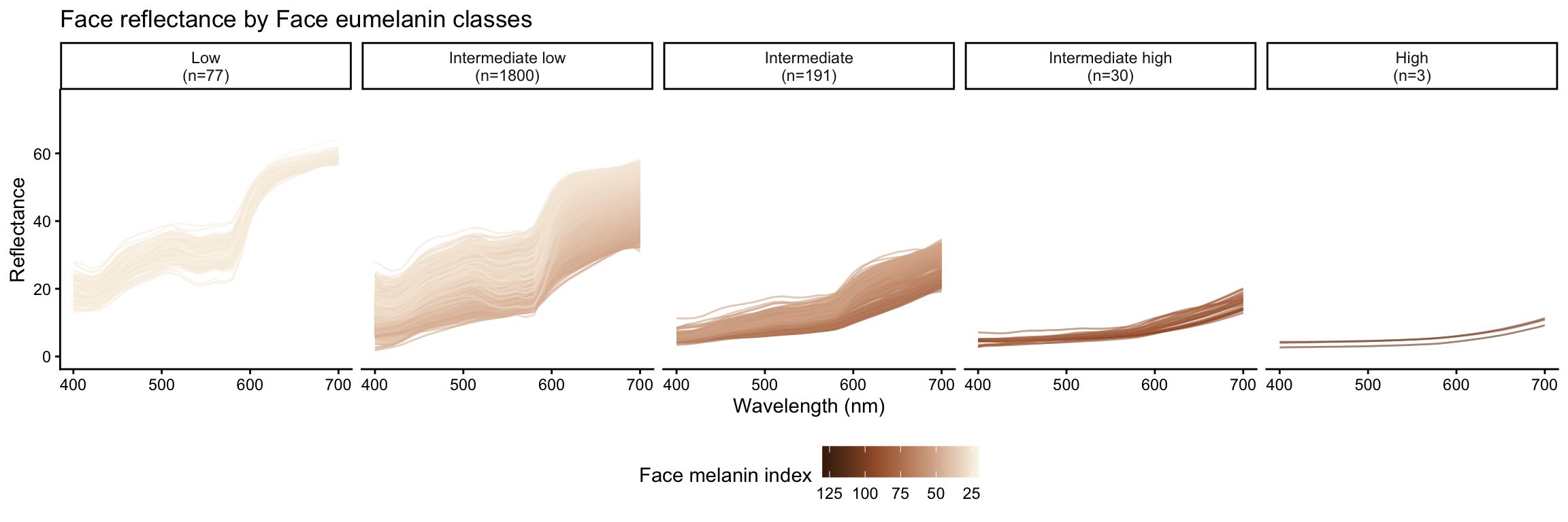 Eumelanin classes are defined based on melanin index ranges as follows: