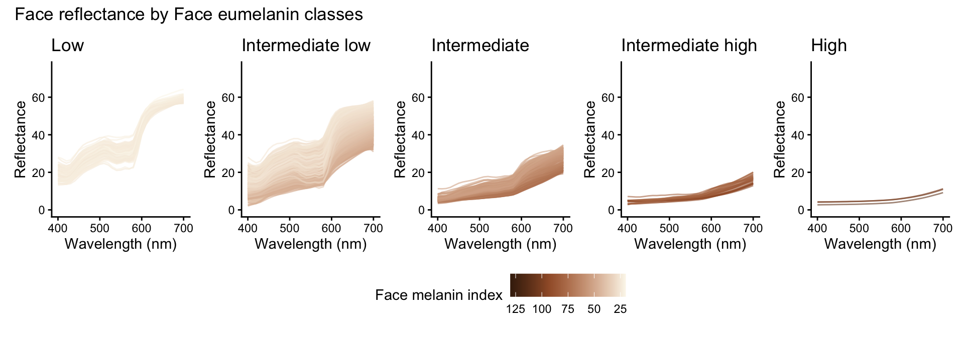 Eumelanin classes are defined based on melanin index ranges as follows: