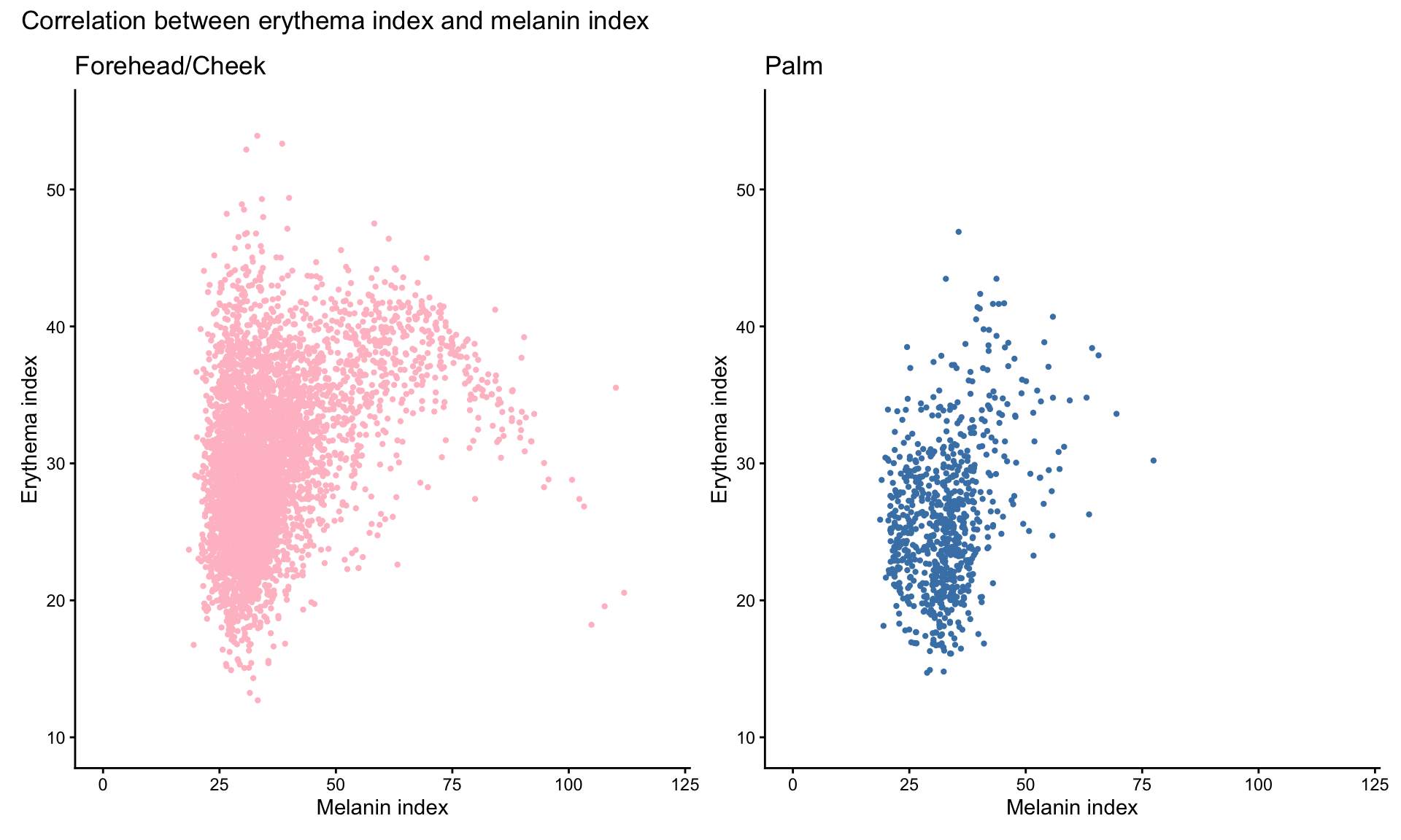 FACE site refers to Forehead and Cheek, while PALM site refers to the Palm of the hand.