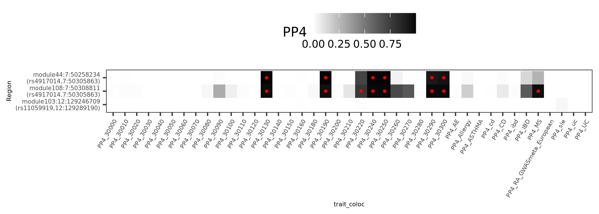 In earlier section, the region “module108:7:50308811” coloc with MS is included in these dark blue regions.