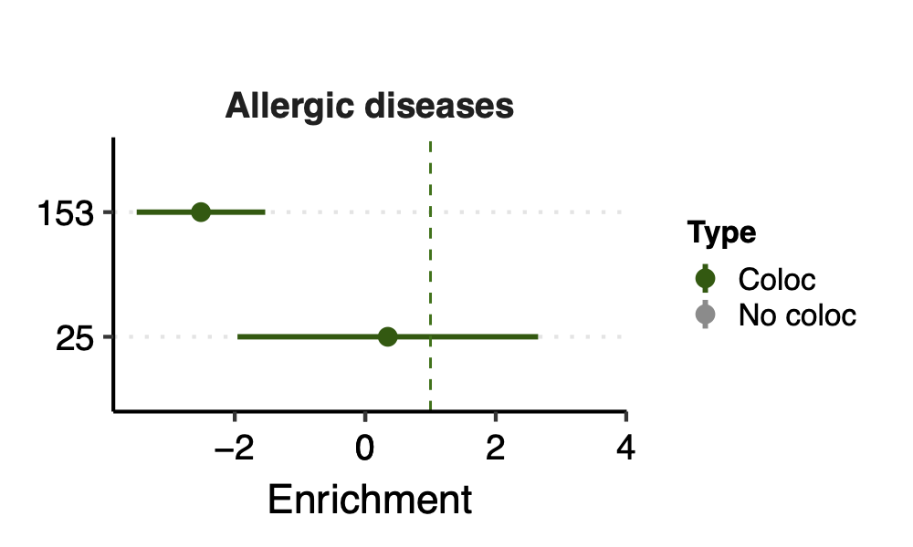 In total, we considered three (four) types of coloc. Coloc with (1) 29 blood related traits from ukbb, (2) 11 immune traits, (3) 27 more traits from ukbb. (The 4-th type is coloc with cis genes.)