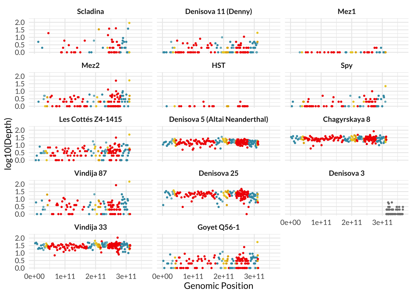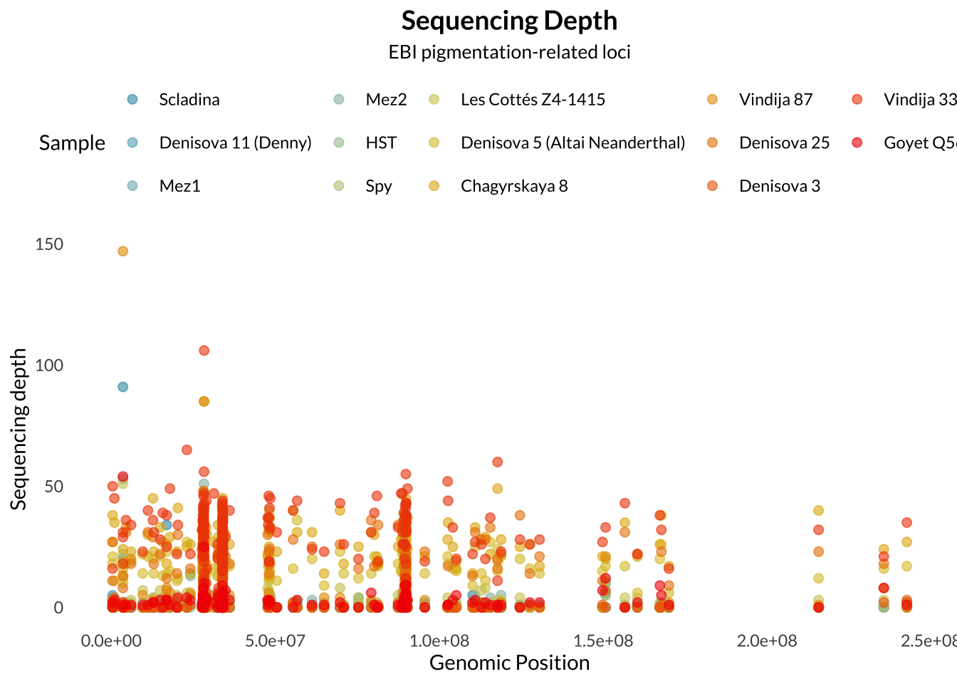 Sequencing read alignments were processed using samtools. The input BAM file was first indexed, then coordinate-sorted and re-indexed to ensure compatibility with downstream analyses. Read depth was calculated for archaic samples at the specified pigmentation-related SNP panel using samtools depth including sites with zero coverage.