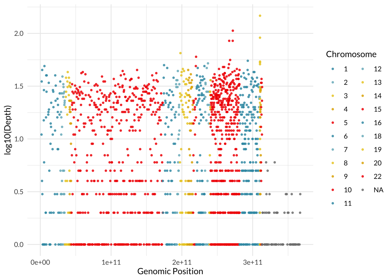 values = rep(wes_palette("Zissou1", 5), length.out = length(unique(depth_all$Chromosome)))