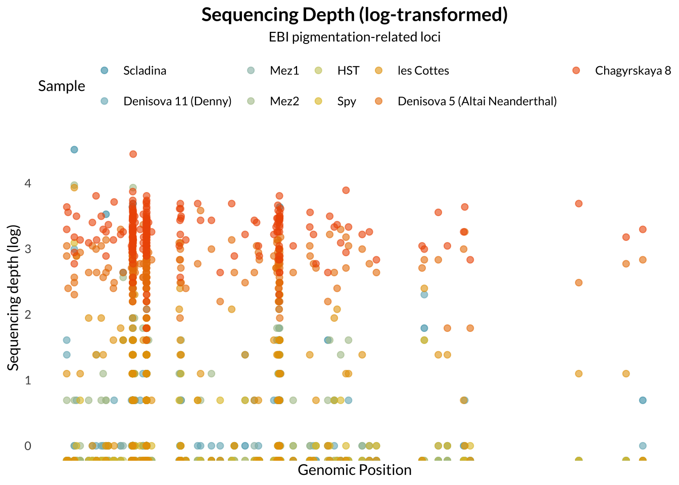 samples = c("Denisova 3 (Denisovan)\nDenisova 11 (F1 Hybrid)\n Denisova 5 (Neanderthal)\n Denisova 25 (Denisovan)",