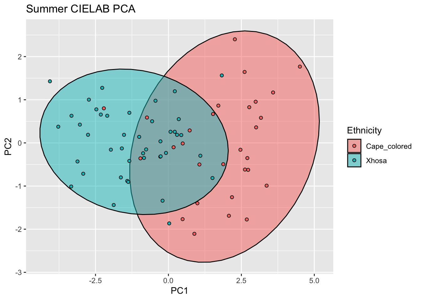 Eresult <- t.test(MedianForeheadE ~ Ethnicity, data = summer_data)
