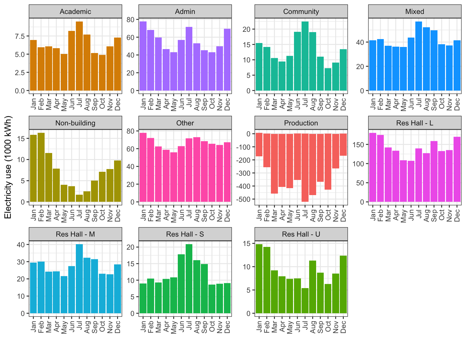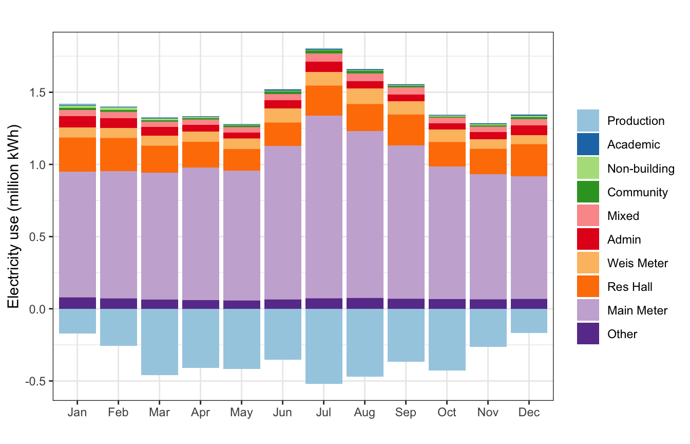 labs(x = "", y = "Electricity use (1000 kWh)", fill = "") +