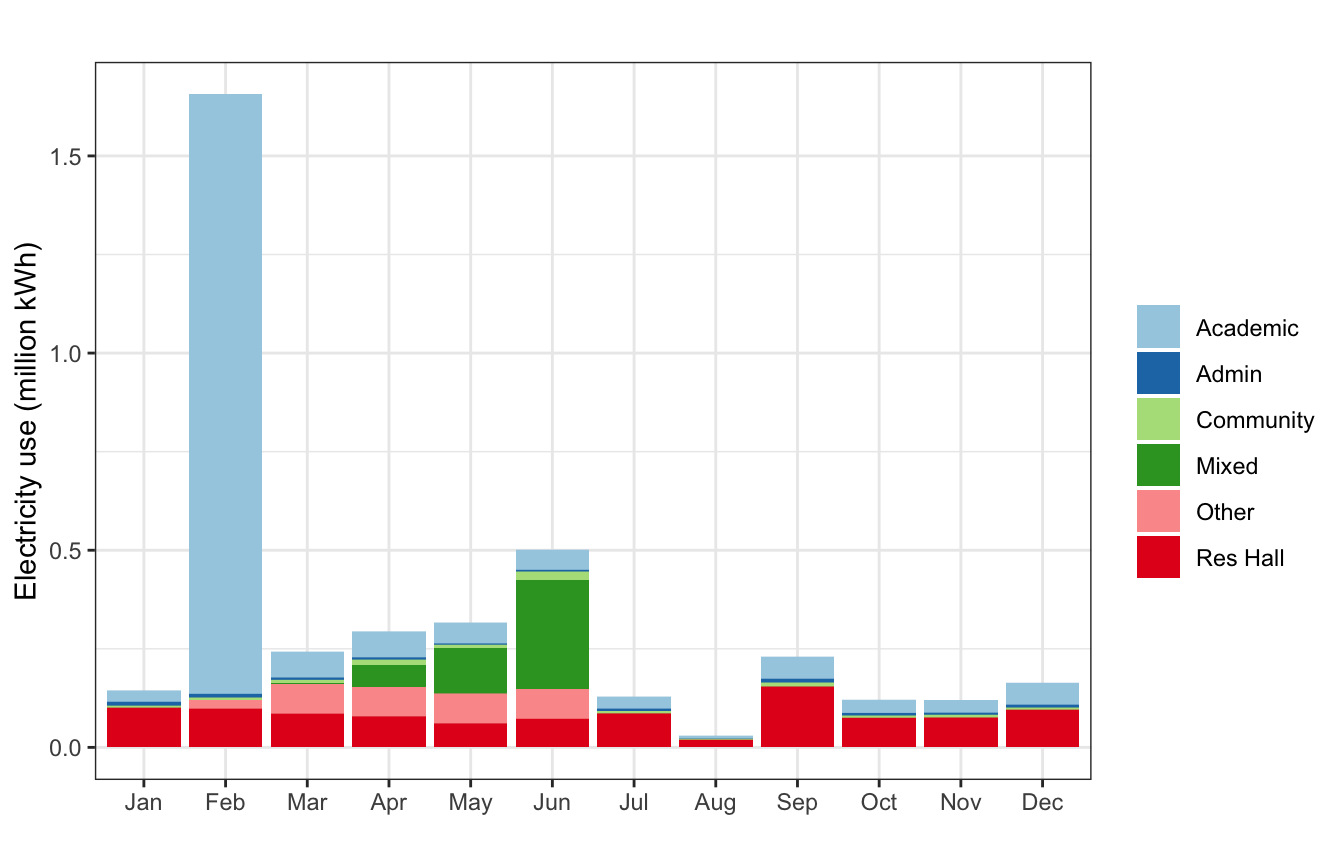 labs(x = "", y = "Electricity use (million kWh)", fill = "",