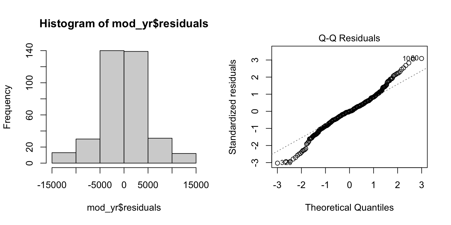 hist(mod_yr$residuals) # Histogram of residuals
