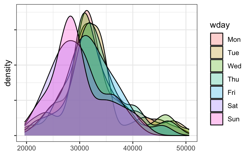 wday = wday(date, label = TRUE)) # extract day of the week