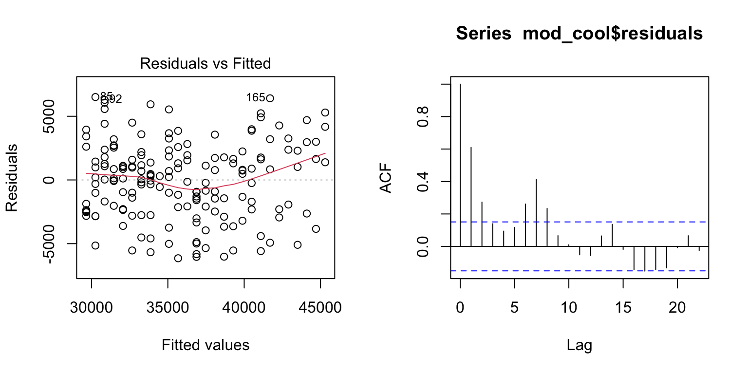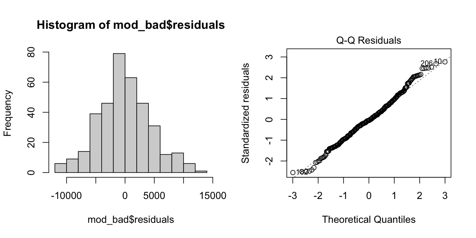 assumptions and drop the Q-Q plot.par(mfrow = c(1, 2)) # This code put two plots in the same window