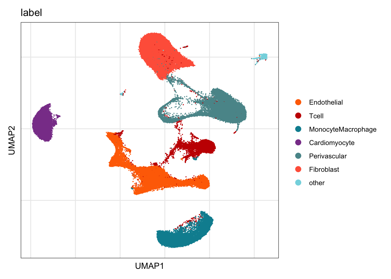 seurat$label[which(seurat$seurat_clusters %in% c("4"))] <- "Cardiomyocyte"