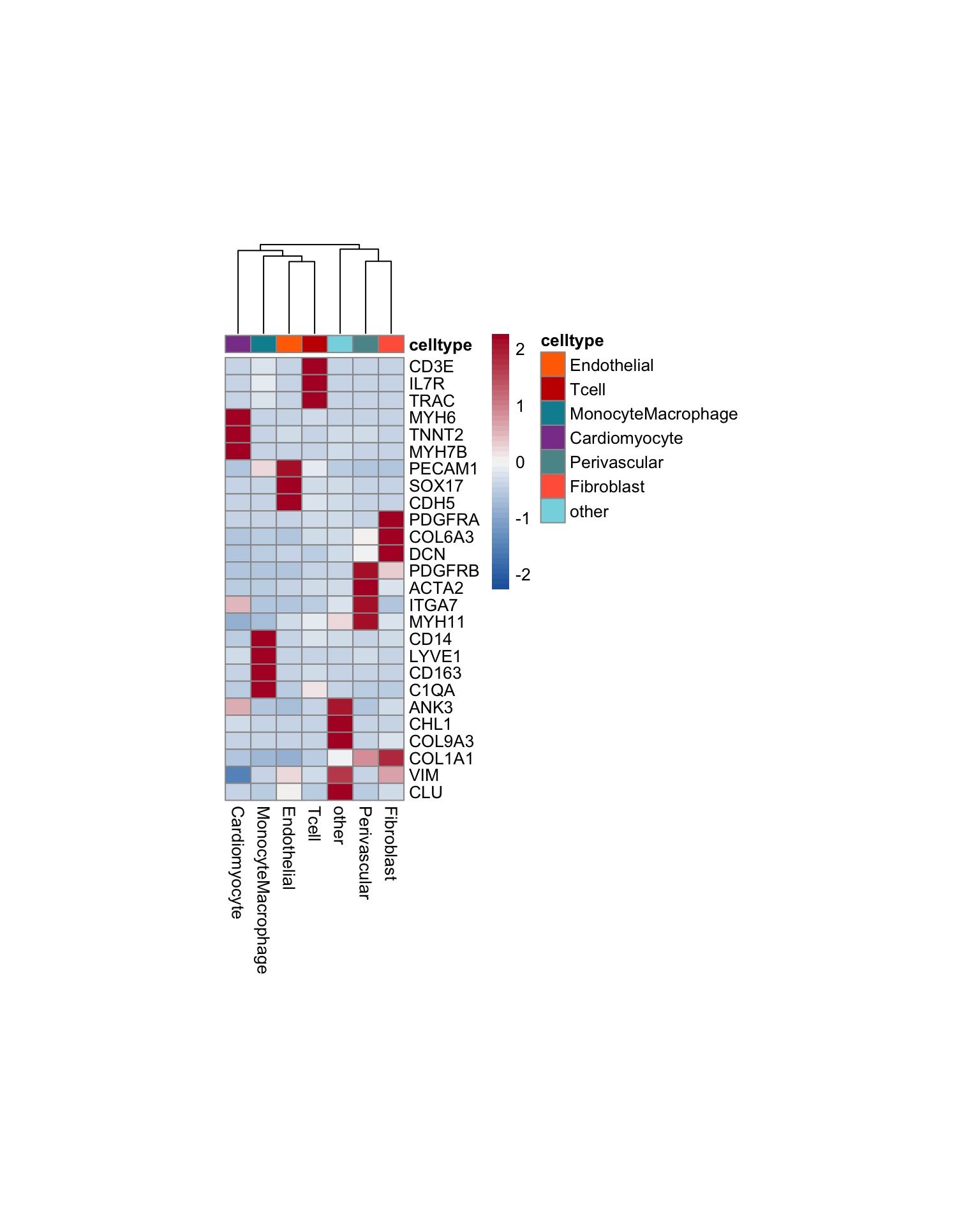 pOut <- avgHeatmap(seurat = seurat, selGenes = selGenesAll,