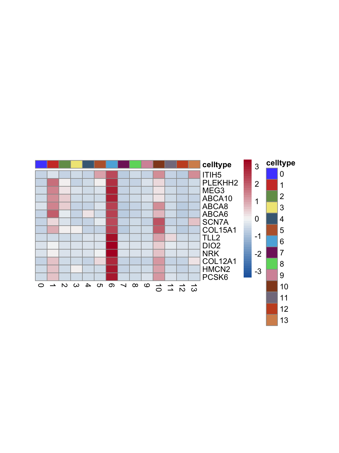 "pOut <- avgHeatmap(seurat = seurat, selGenes = selGenes,