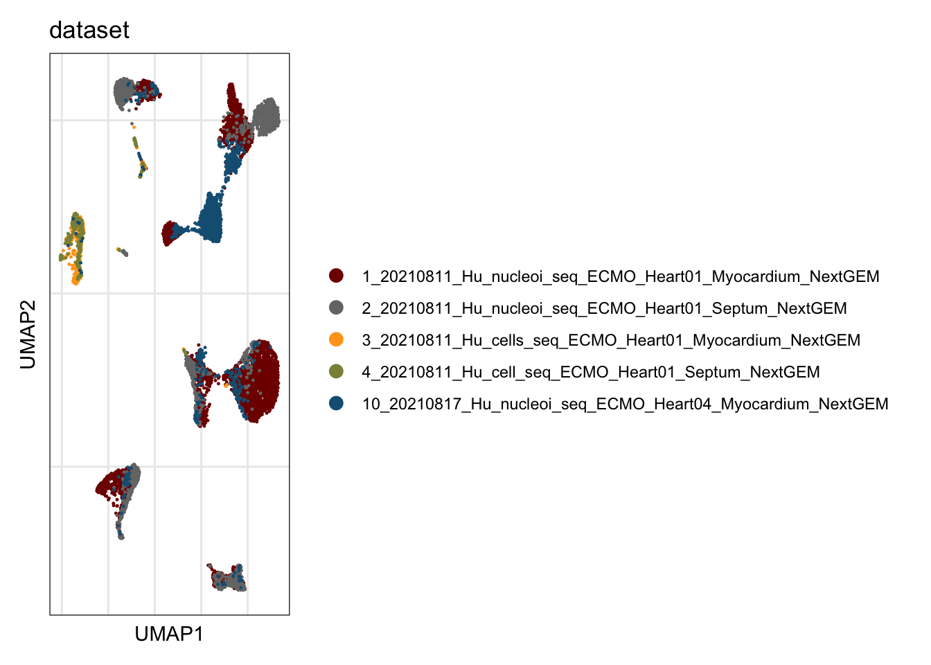 seurat <- merge(x = seurat, y = seuratX, project = "humanCardiacFibro")