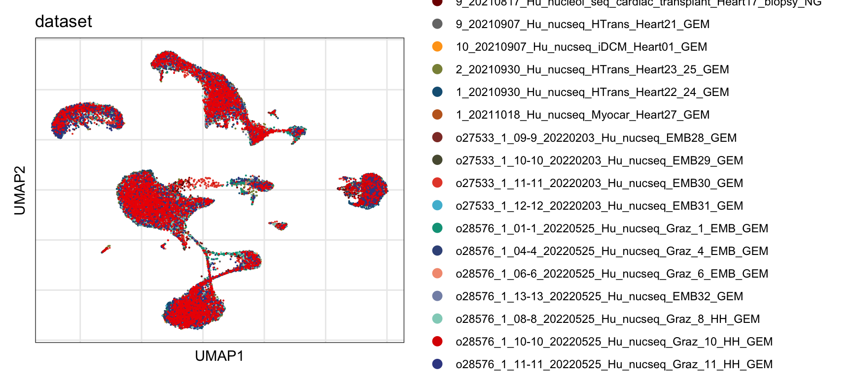 colSmp <- c(pal_uchicago()(8), pal_npg()(8), pal_aaas()(10))[1:length(unique(seurat$dataset))]