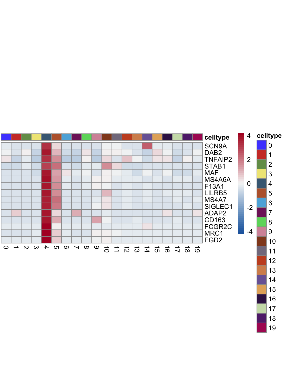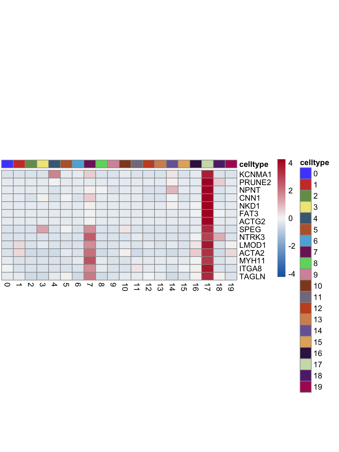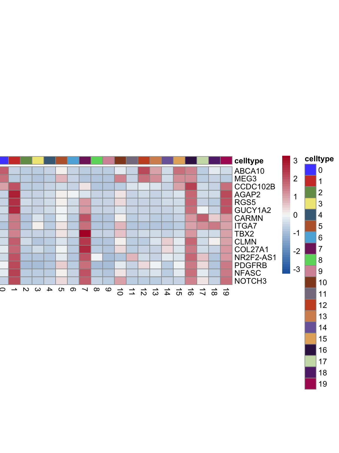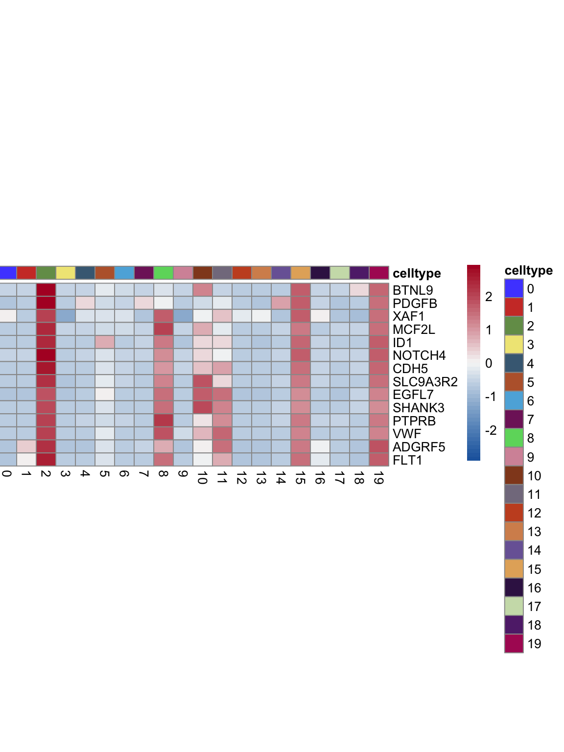 "pOut <- avgHeatmap(seurat = seurat, selGenes = selGenes,