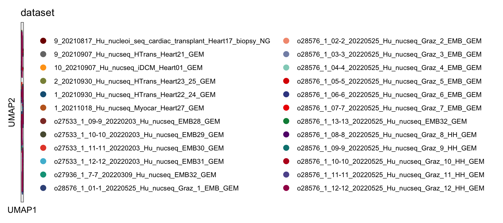 seurat <- merge(x = seurat, y = seuratX, project = "humanCardiacFibro")