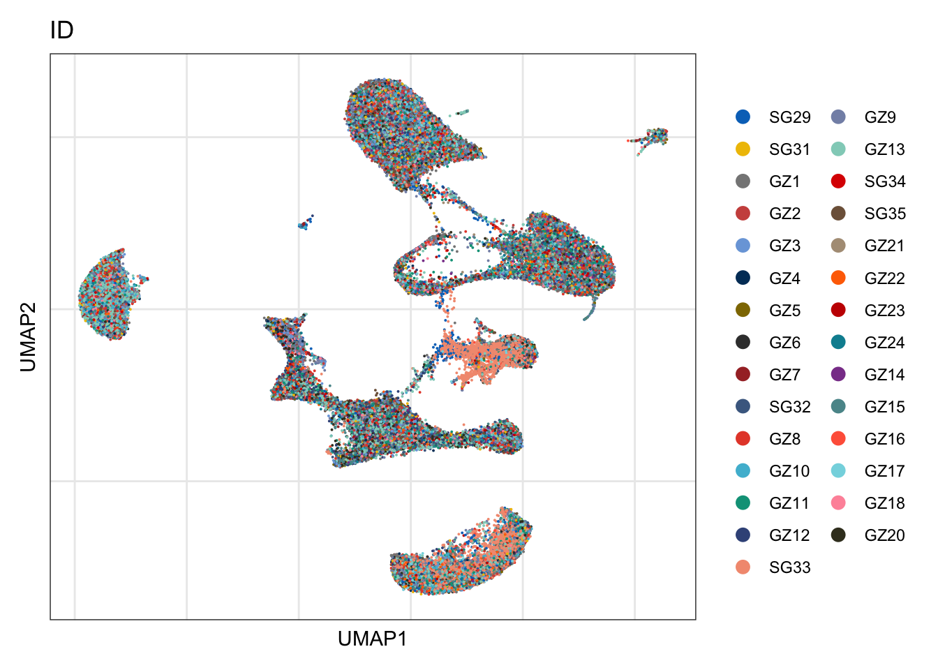seurat <- subset(seurat, ID %in% c("GZ19", "SG30"), invert=T)