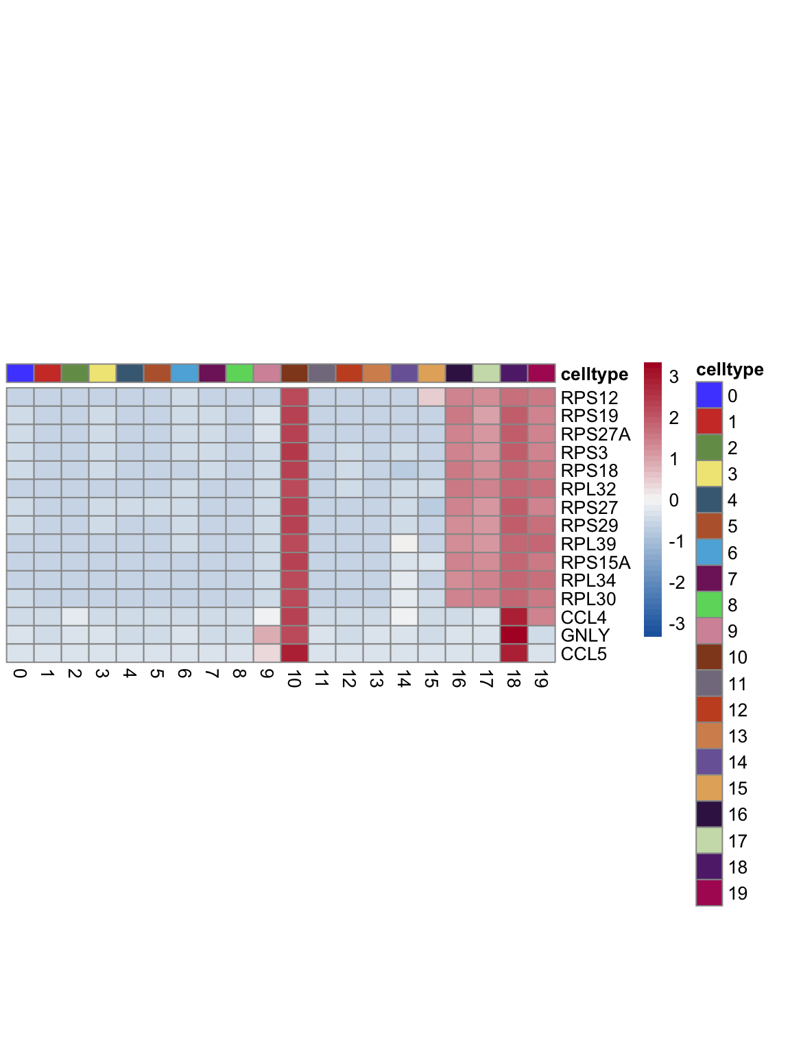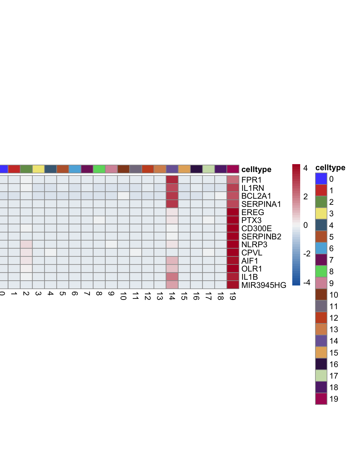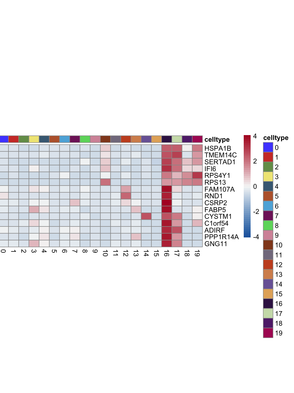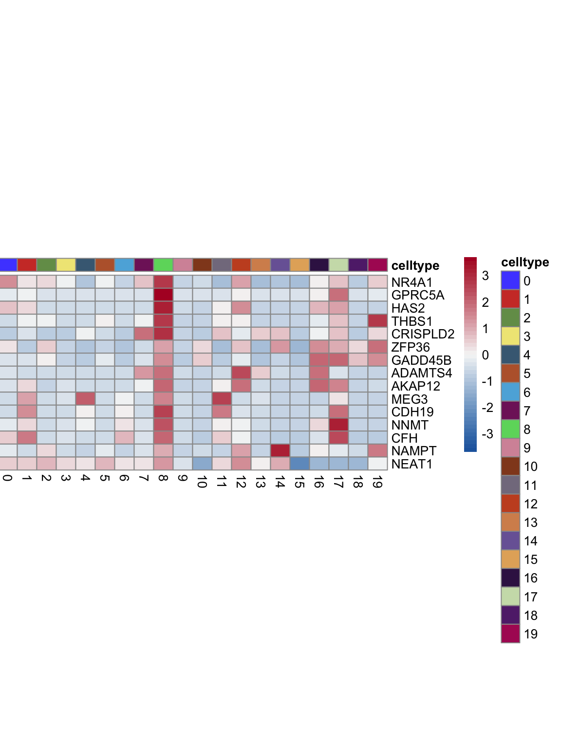 "pOut <- avgHeatmap(seurat = seurat, selGenes = selGenes,