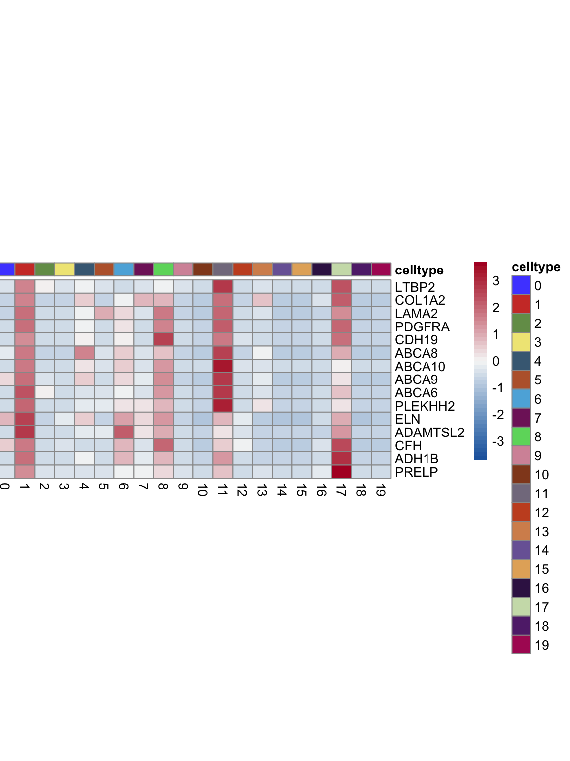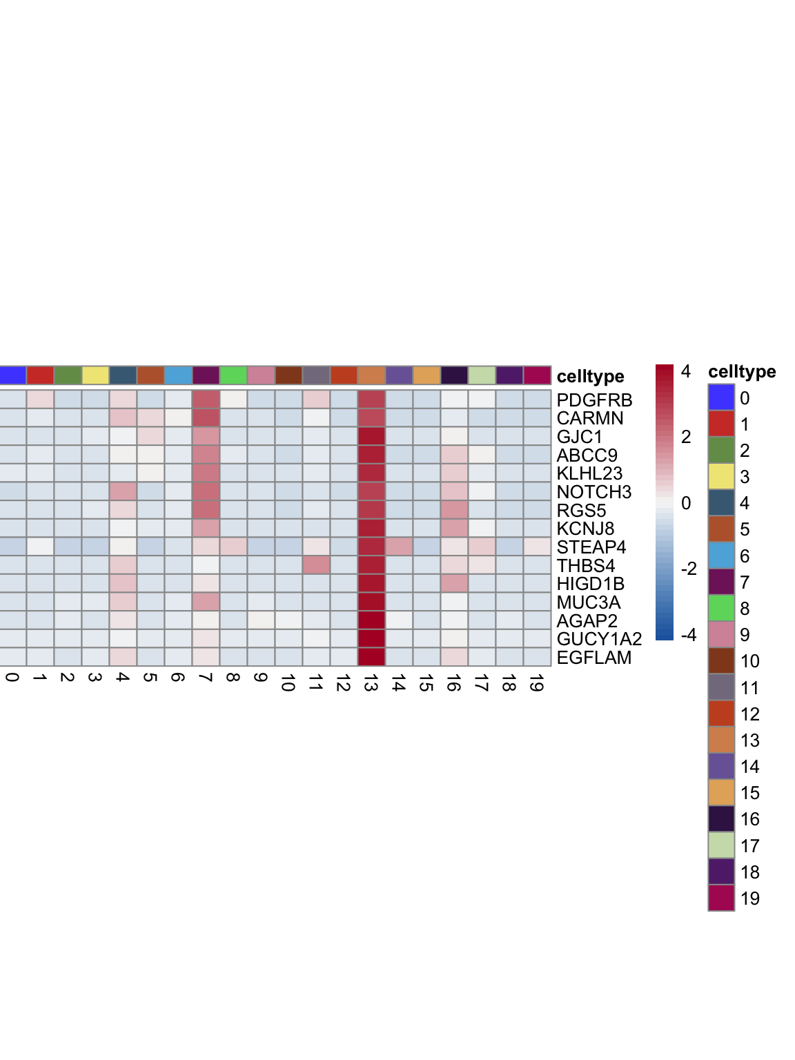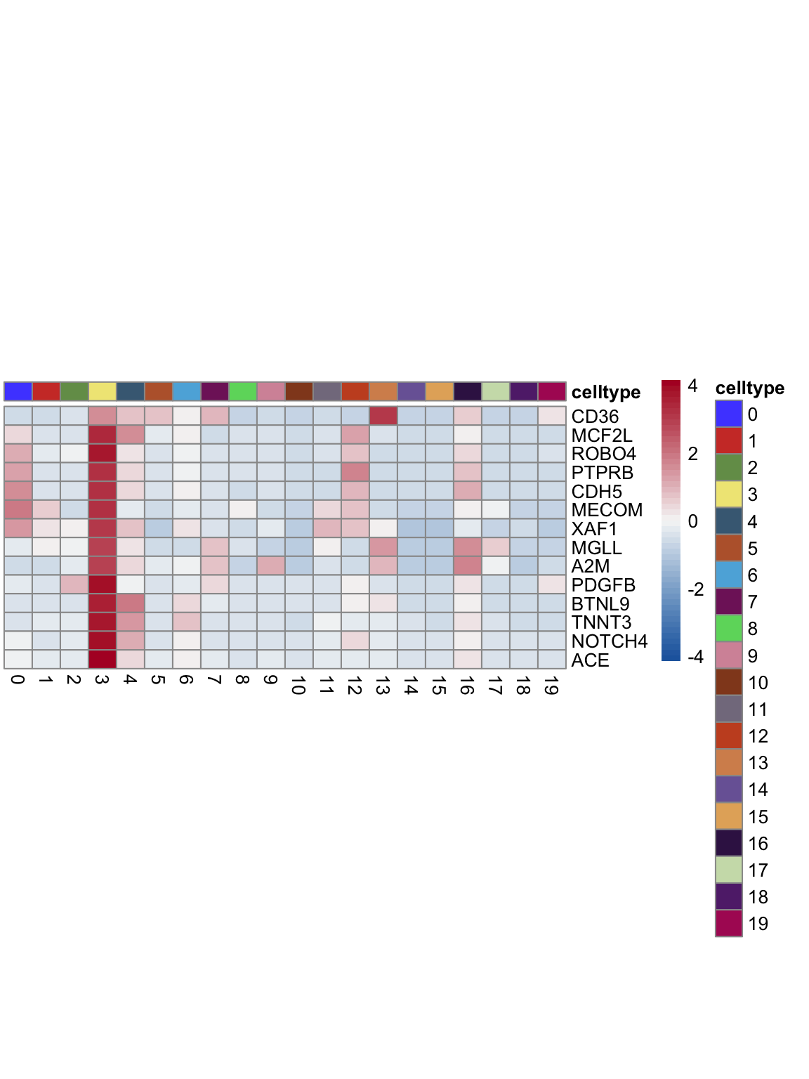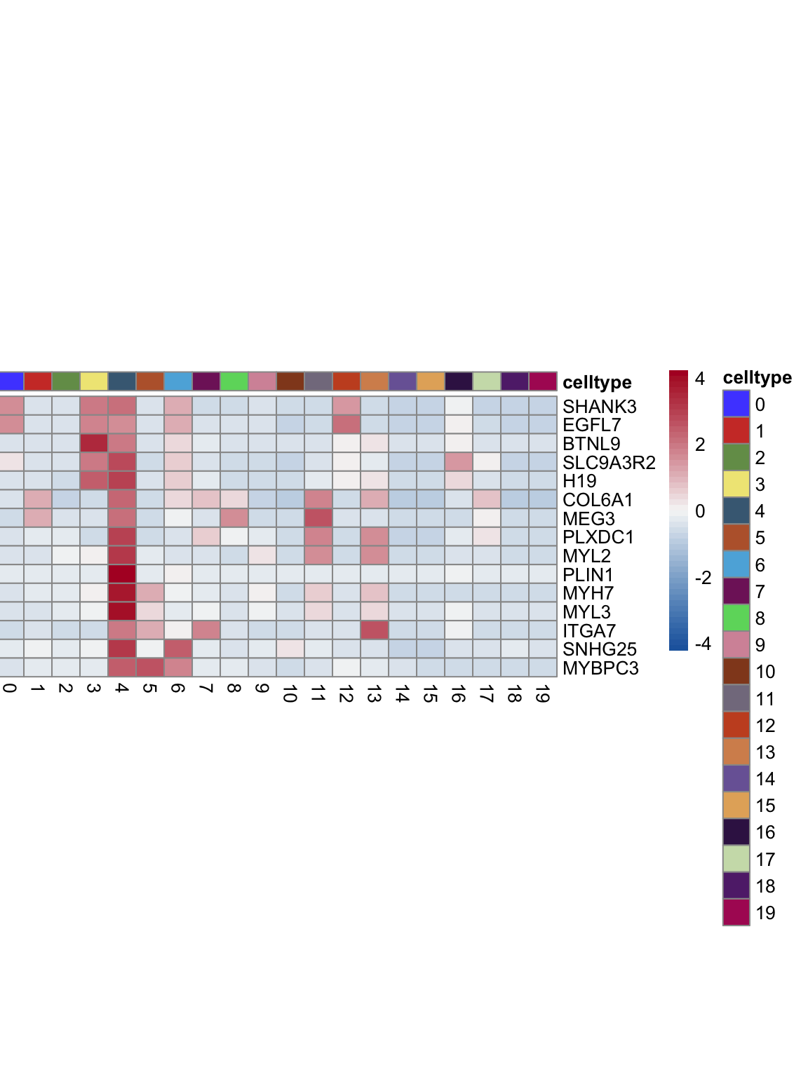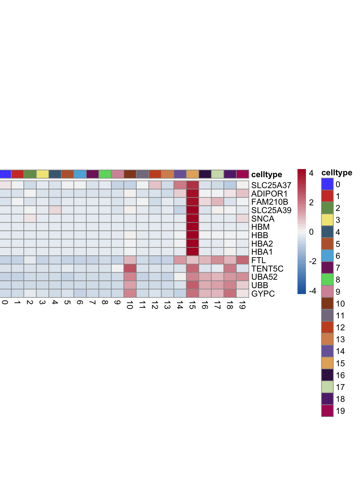 "pOut <- avgHeatmap(seurat = seurat, selGenes = selGenes,