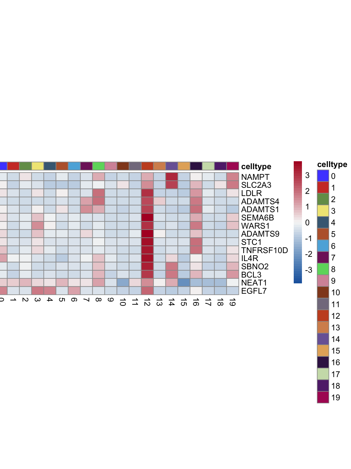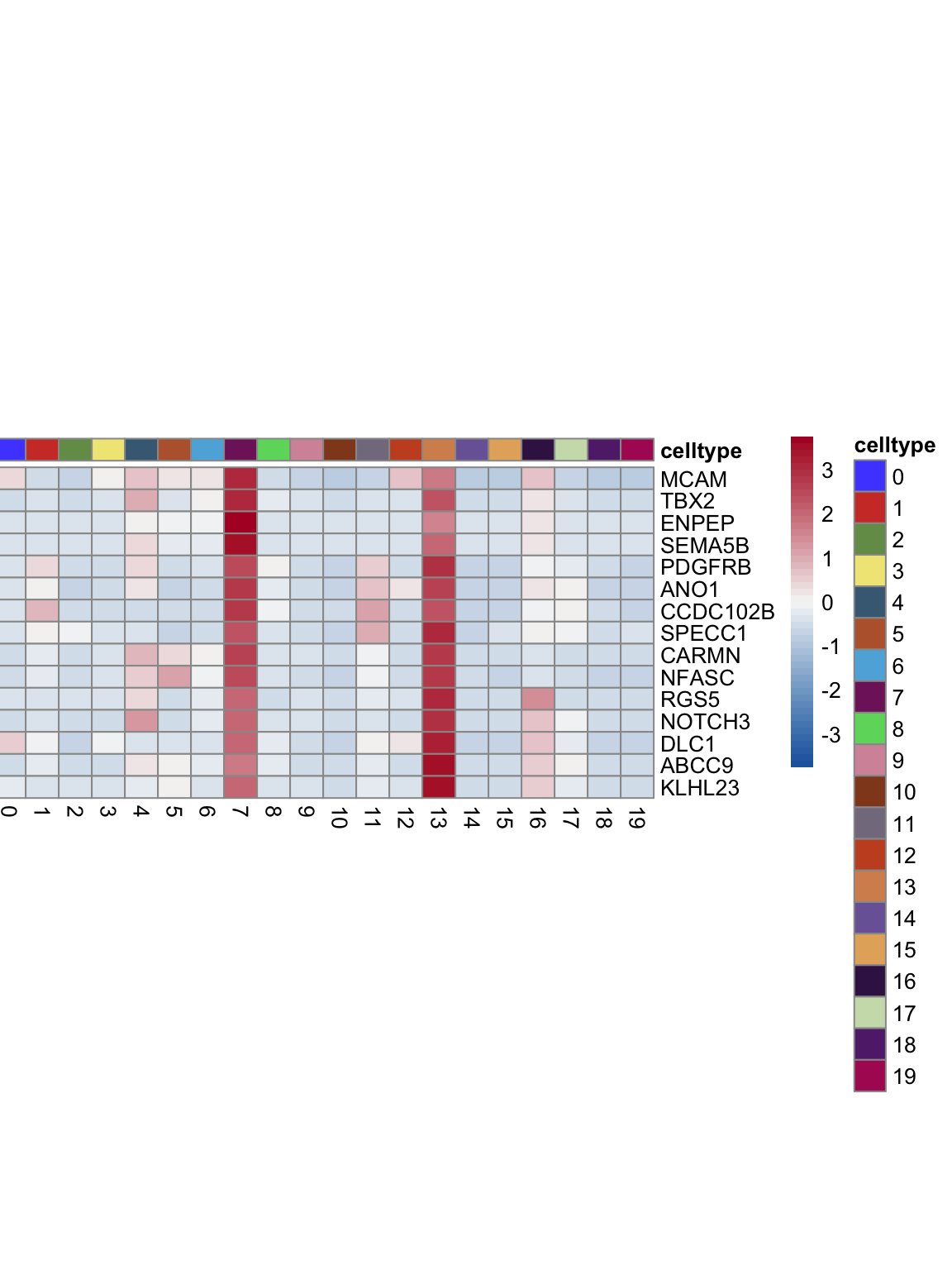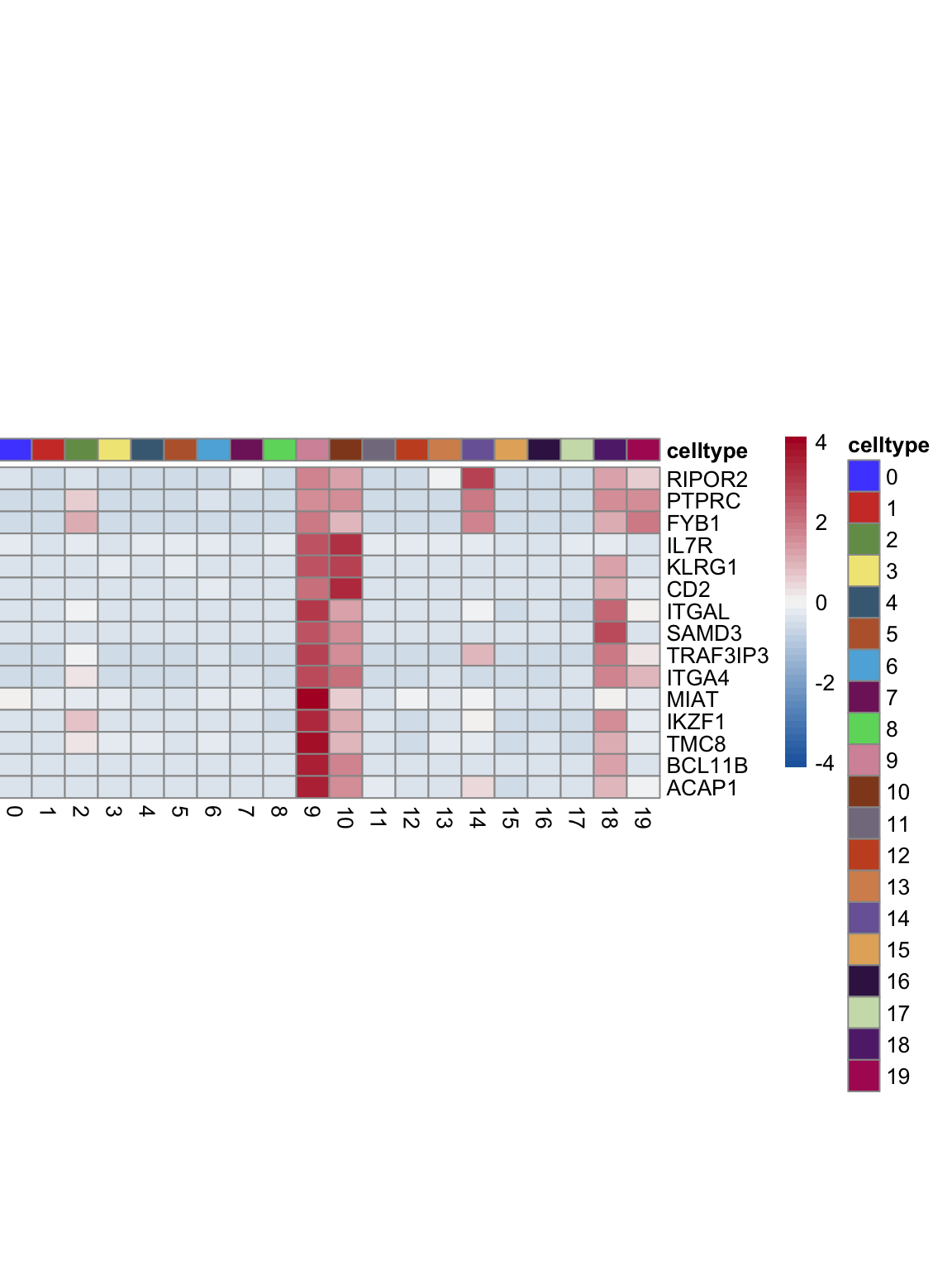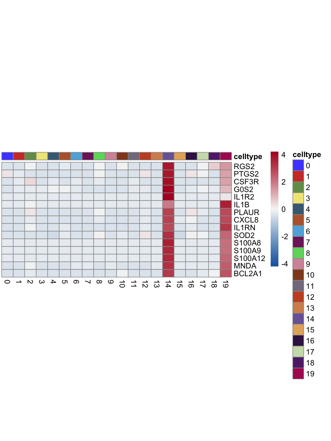 "pOut <- avgHeatmap(seurat = seurat, selGenes = selGenes,
