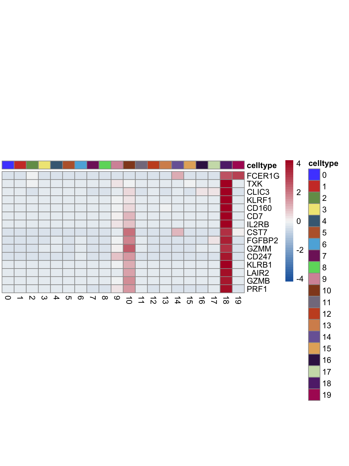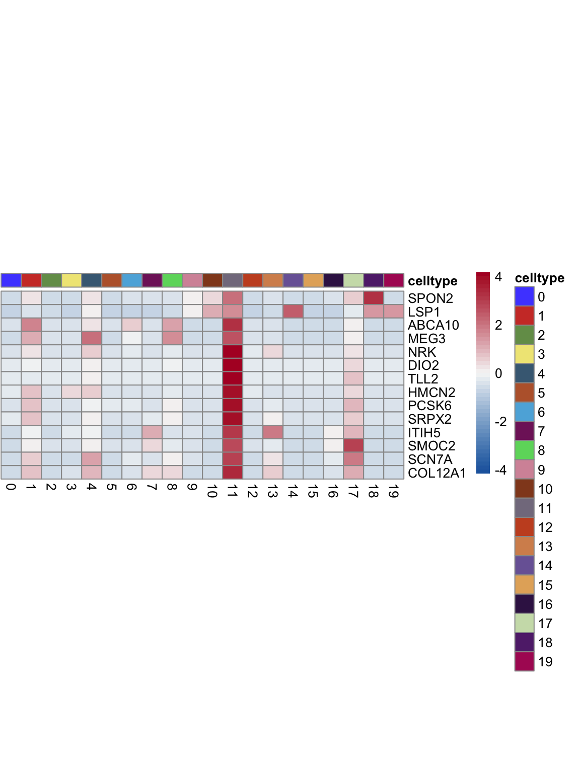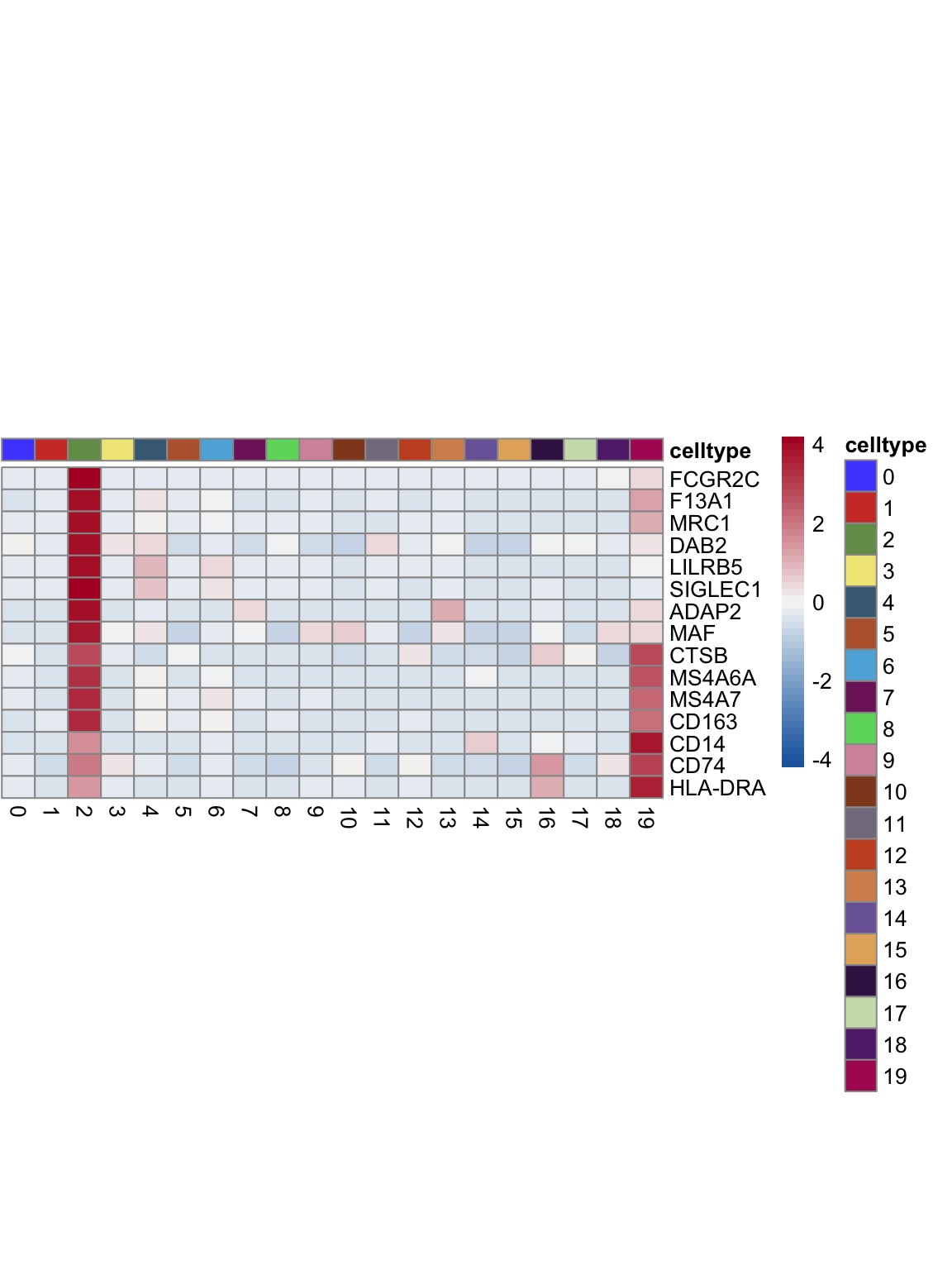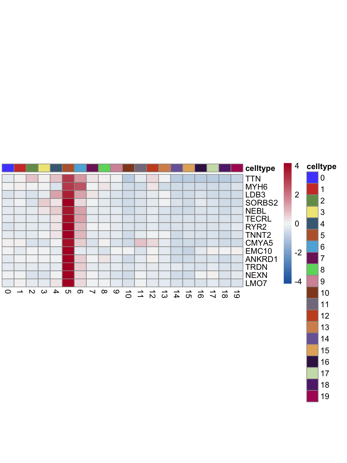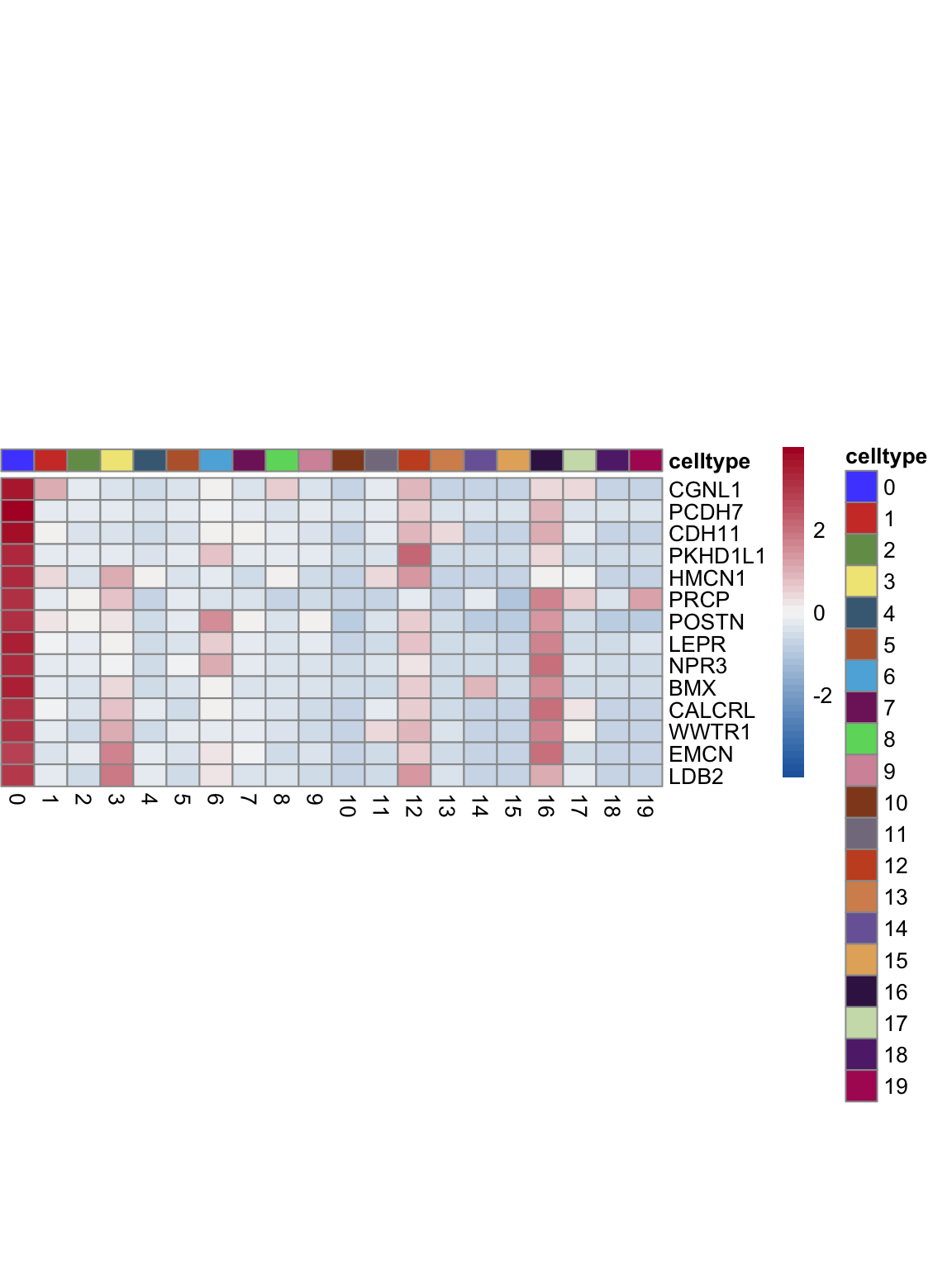 "pOut <- avgHeatmap(seurat = seurat, selGenes = selGenes,