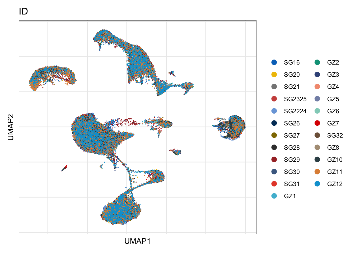 colID <- c(pal_jco()(10), pal_npg()(10), pal_jama()(10))[1:length(unique(seurat$ID))]