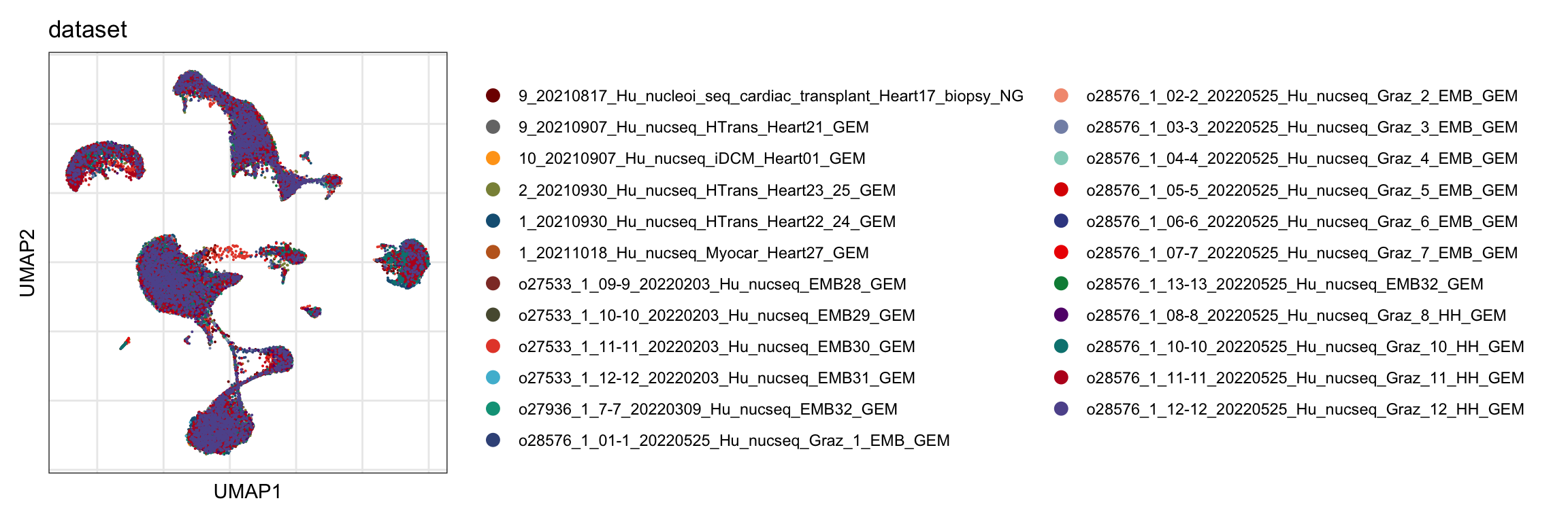 colSmp <- c(pal_uchicago()(8), pal_npg()(8), pal_aaas()(10))[1:length(unique(seurat$dataset))]