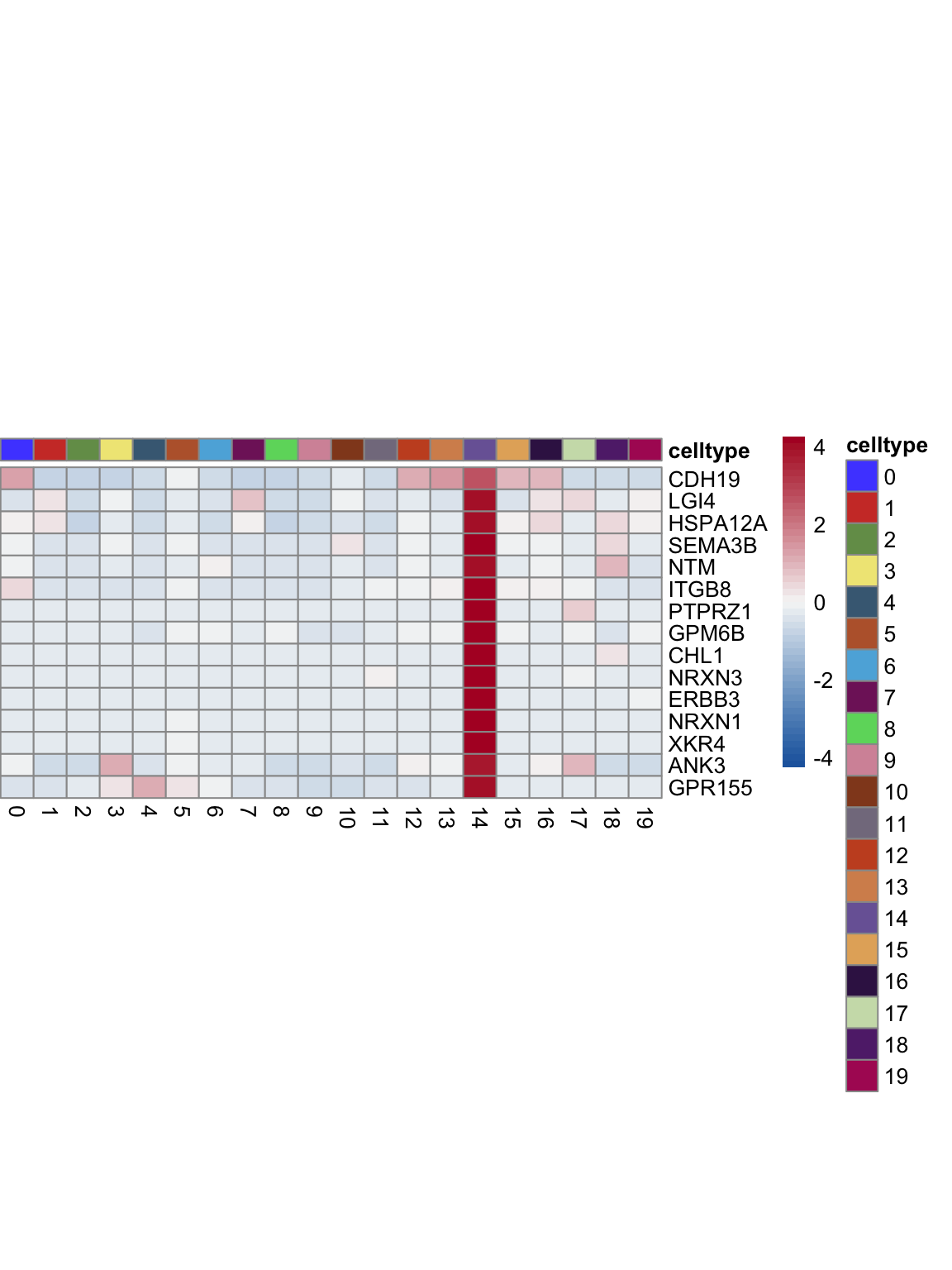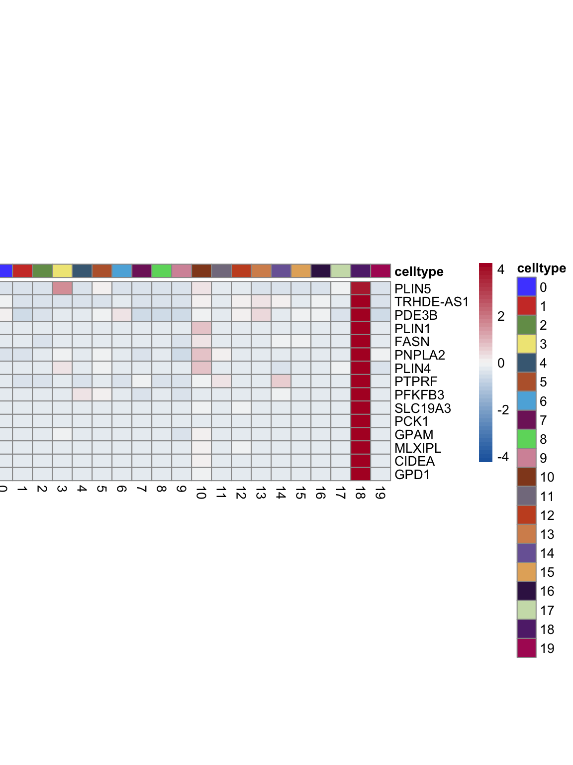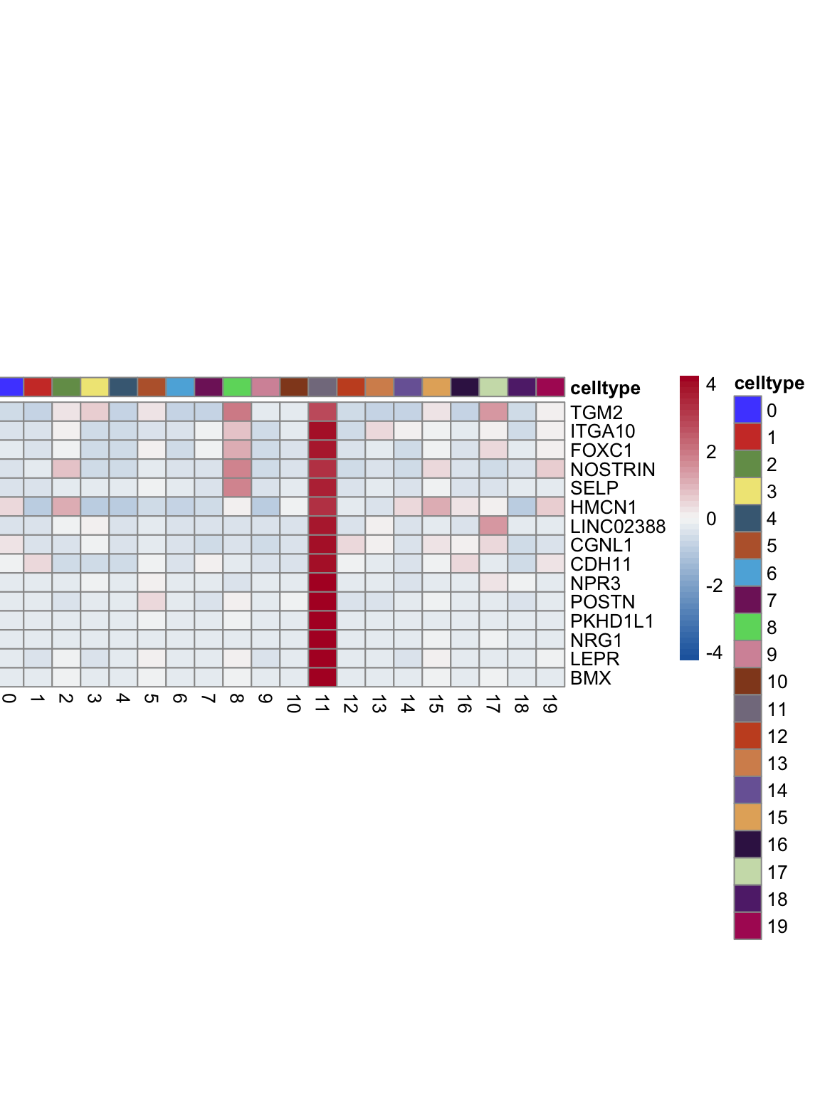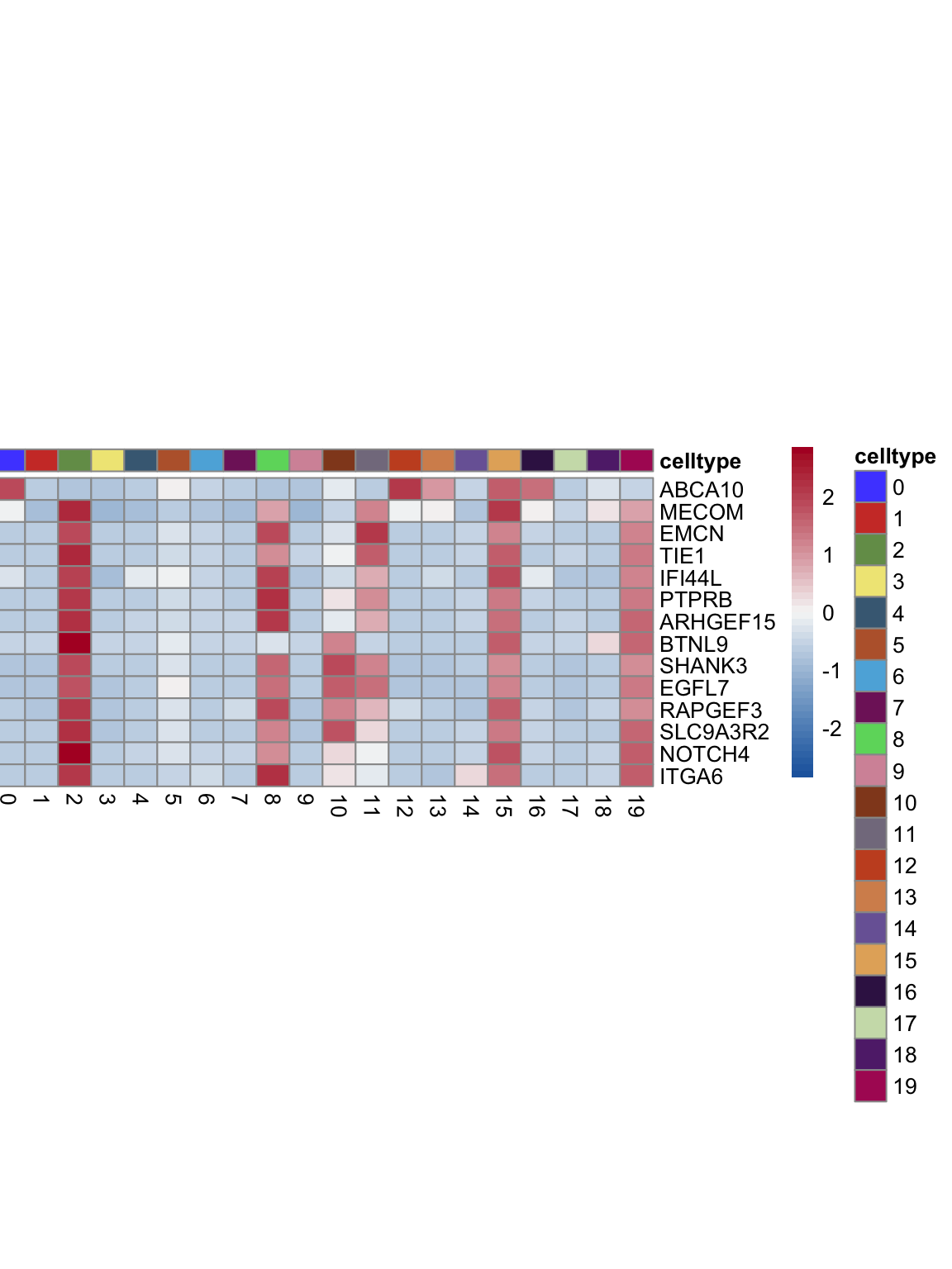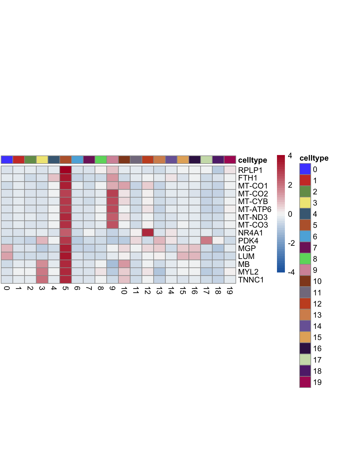 "pOut <- avgHeatmap(seurat = seurat, selGenes = selGenes,