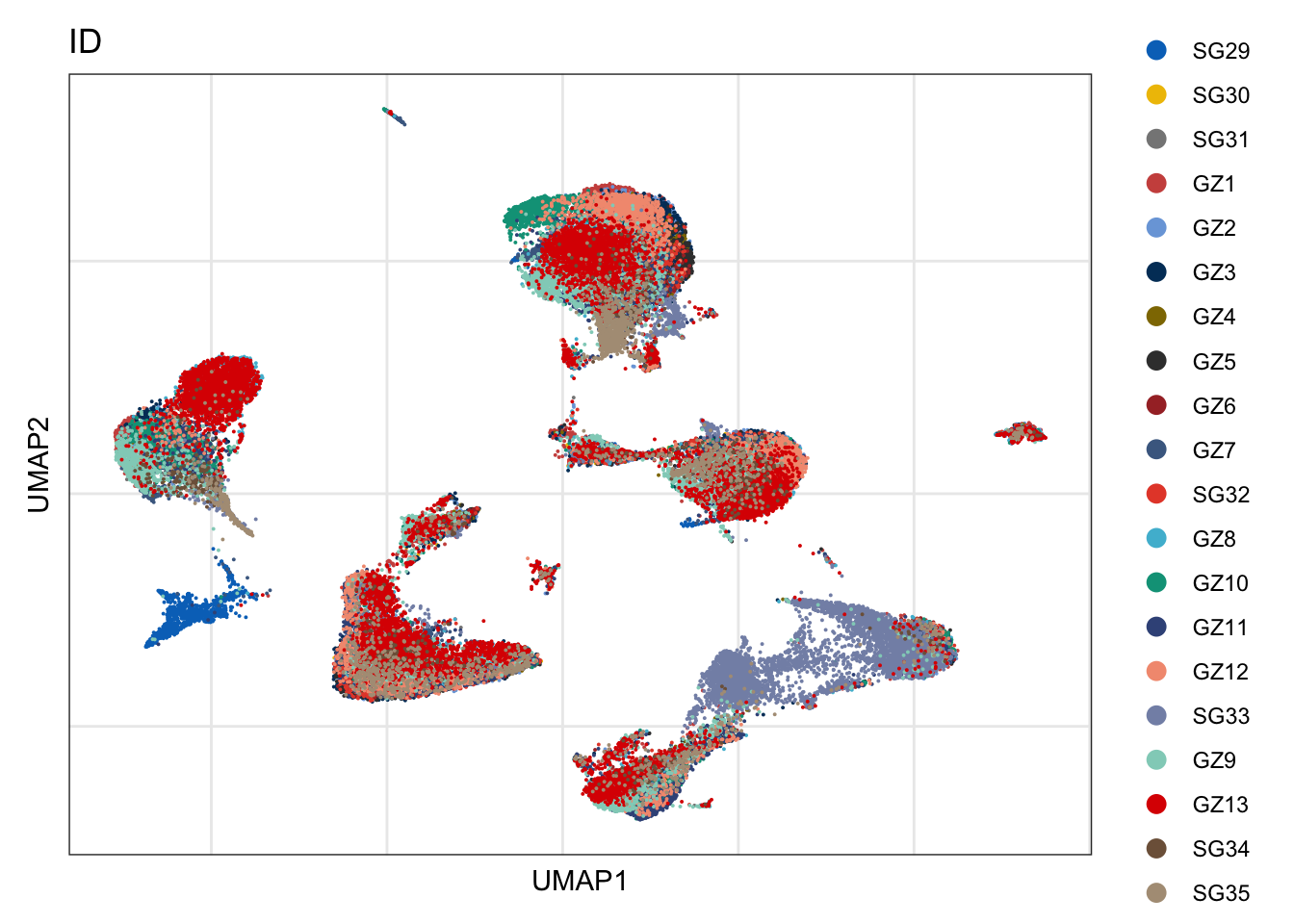 DimPlot(seurat, reduction = "umap", group.by = "ID", cols=colID)+