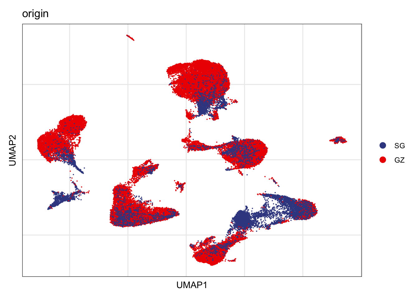 DimPlot(seurat, reduction = "umap", group.by = "origin", cols=colOrig)+