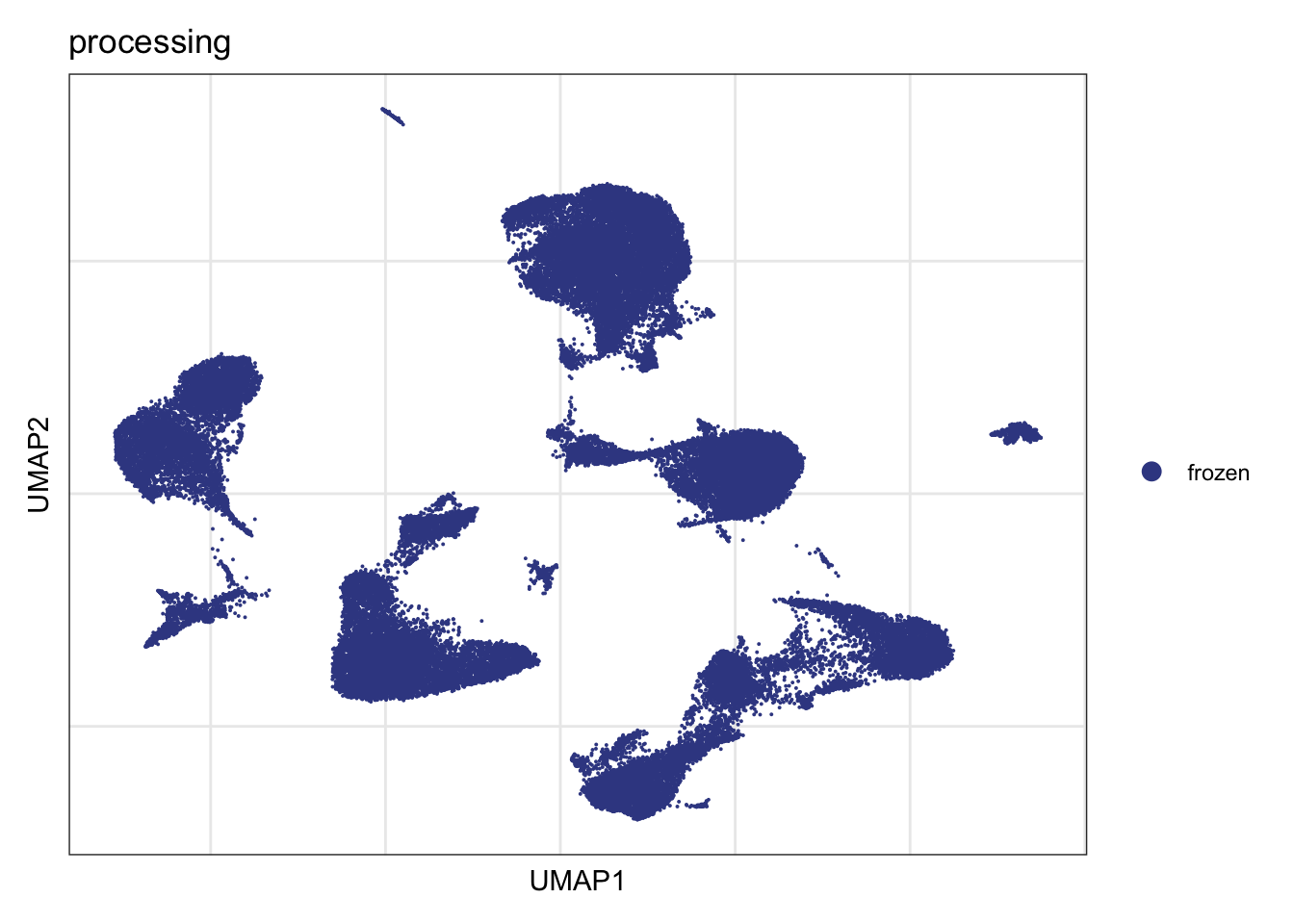DimPlot(seurat, reduction = "umap", group.by = "processing", cols=colProc)+