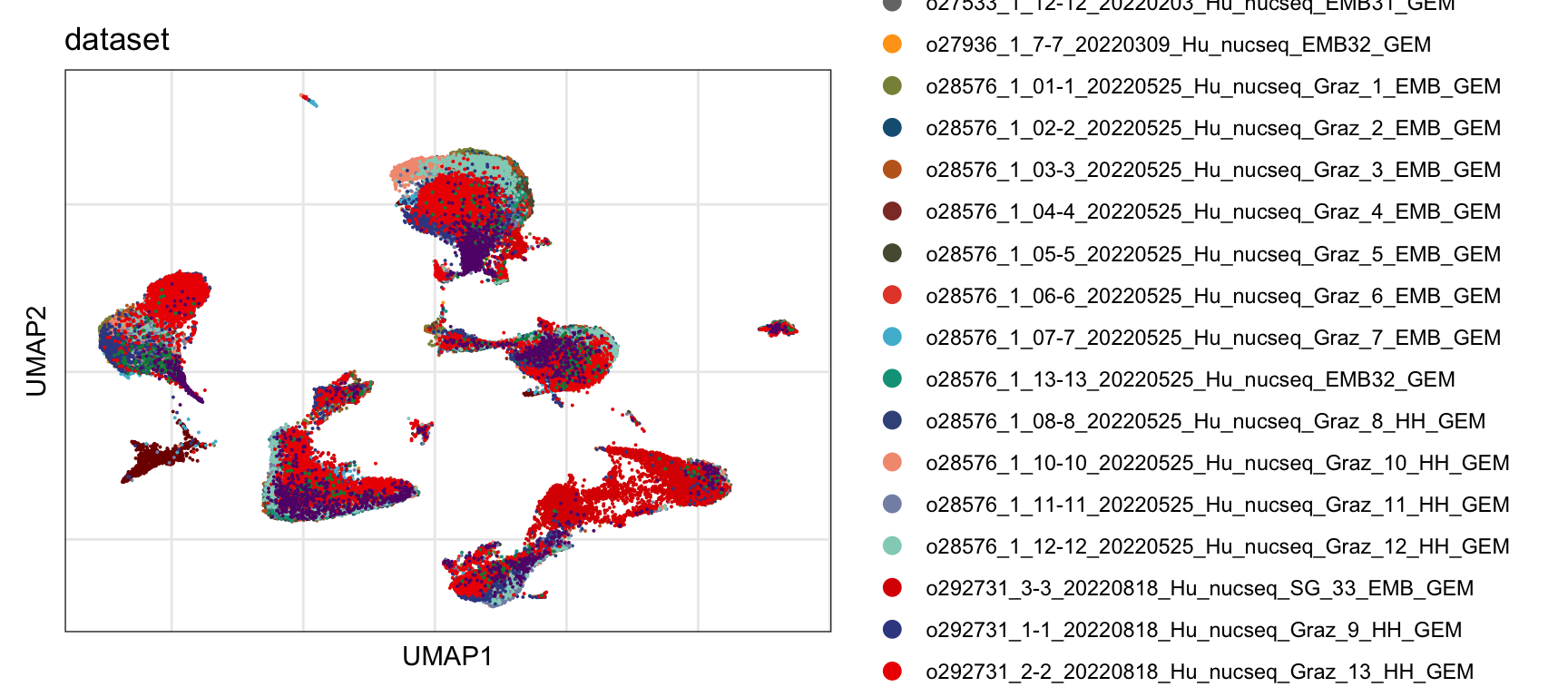 DimPlot(seurat, reduction = "umap", group.by = "dataset", cols=colSmp)+