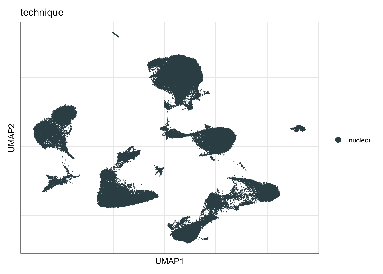 DimPlot(seurat, reduction = "umap", group.by = "technique", cols=colTec)+