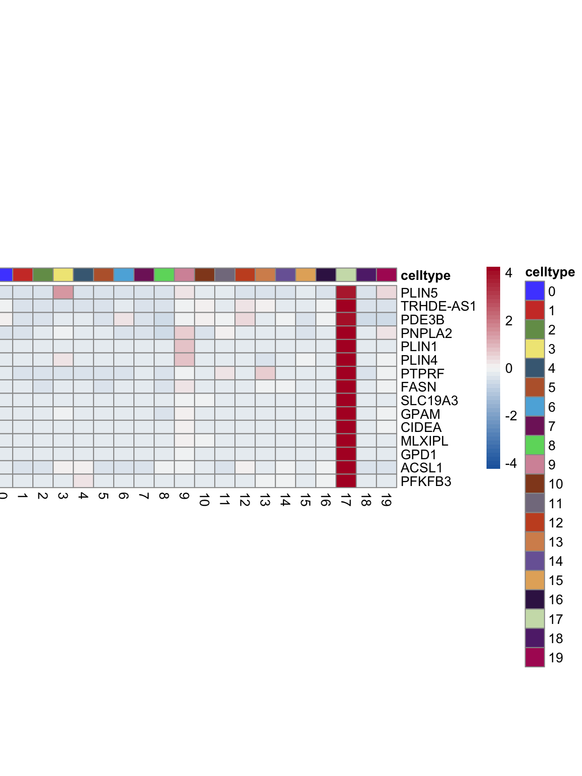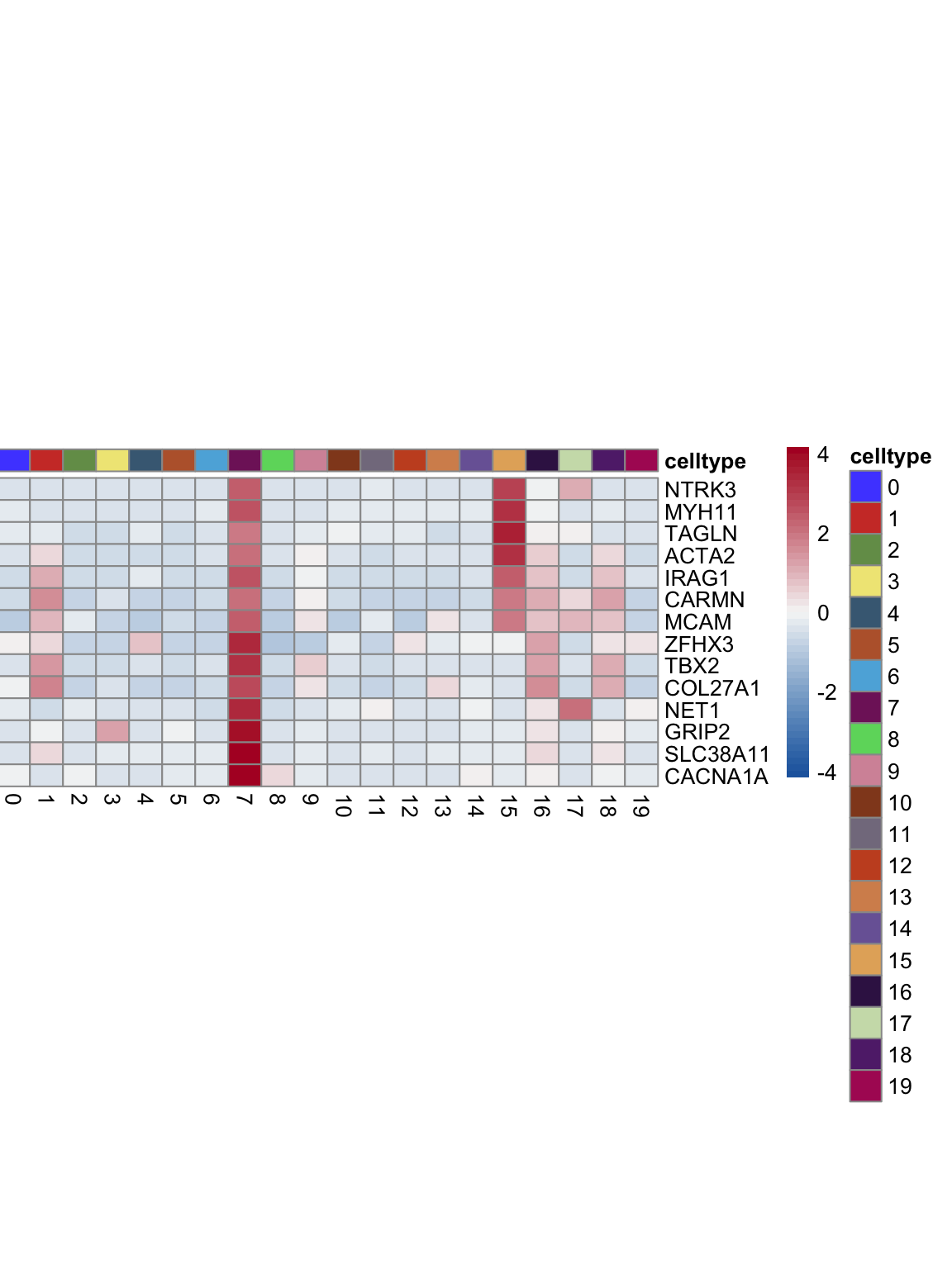 "pOut <- avgHeatmap(seurat = seurat, selGenes = selGenes,
