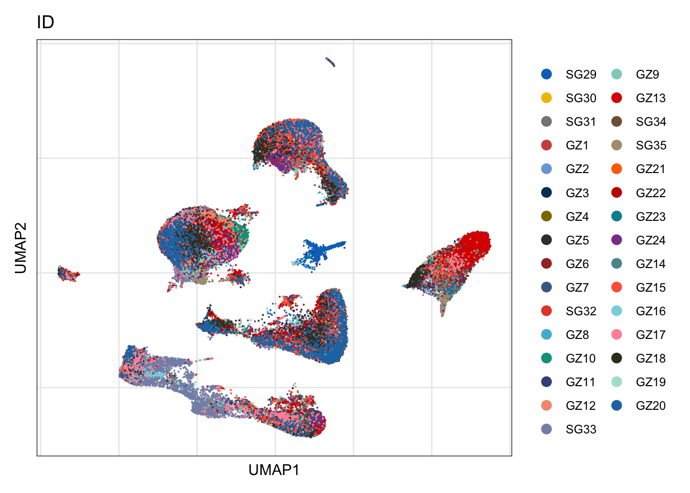 DimPlot(seurat, reduction = "umap", group.by = "ID", cols=colID)+