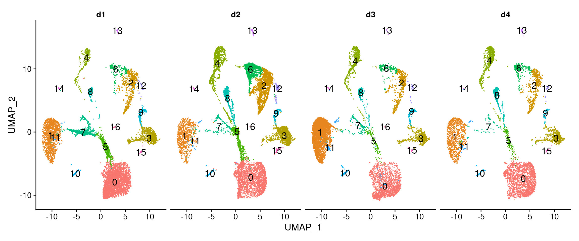 I will cluster all the DCM samples from batch 1 and batch 2 using the integration technique from the Seurat package.