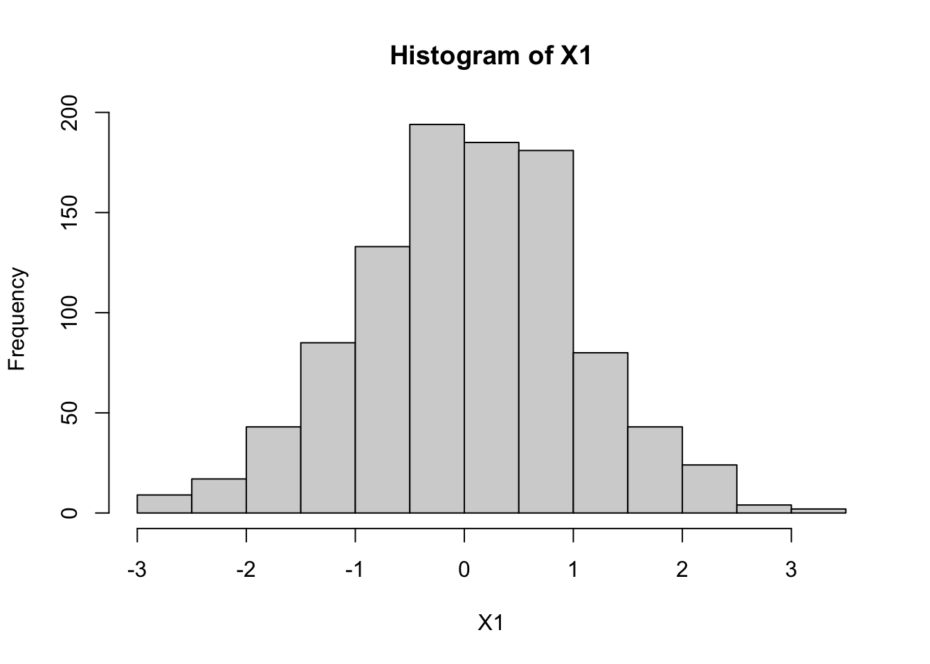 The following code illustrates this: the histograms illustrate both \(X_1\) and \(X_2\) are normal, and the scatterplot of \(X_1\) and \(X_2\) shows they are correlated (and the sample correlation is approximately 0.98).