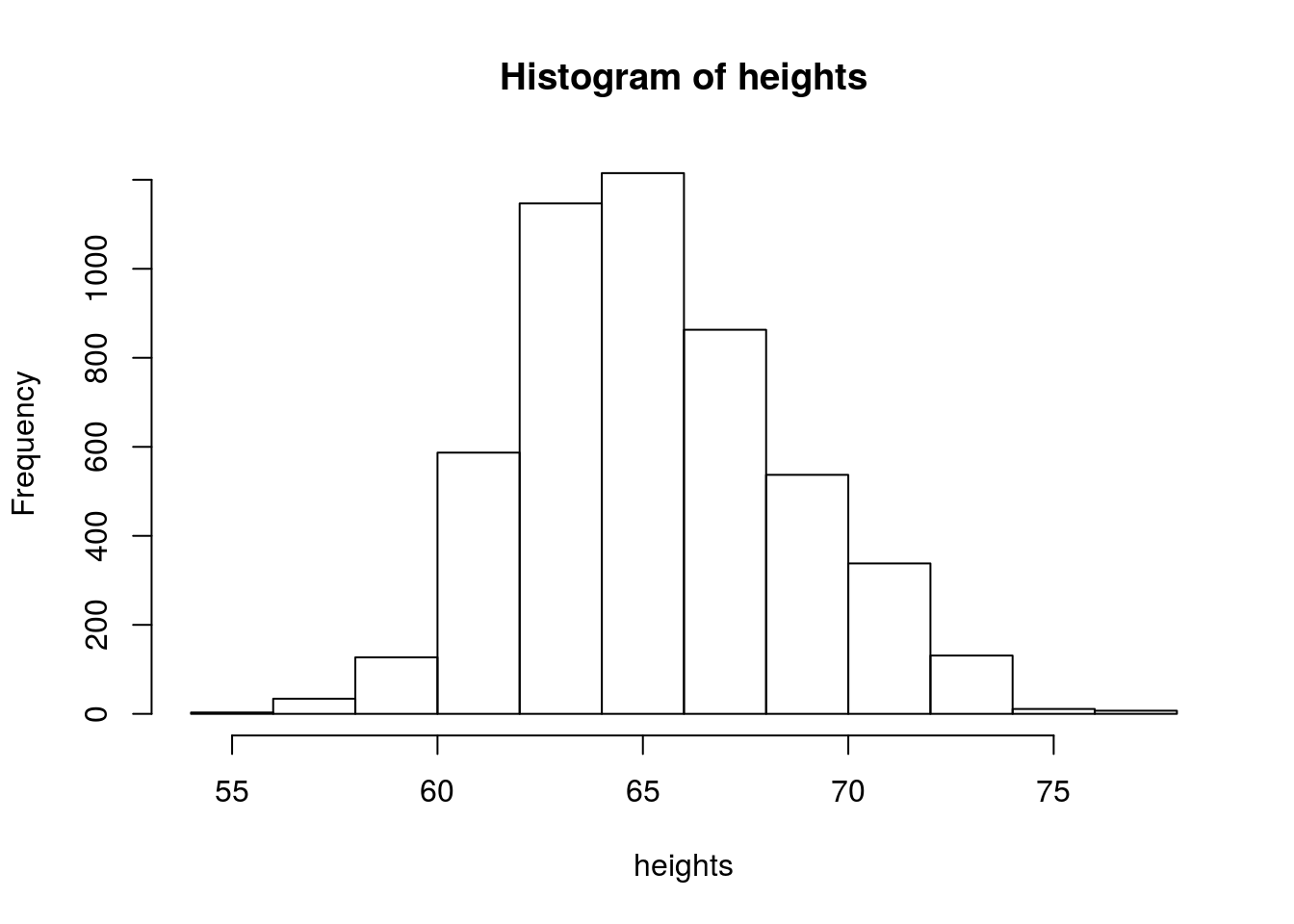 else heights[i] <- rnorm(1, mean = 64, sd = 2.5)