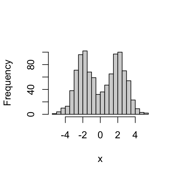 x <- rmix(n = 1000,pi = c(0.5,0.5),mu = c(-2,2),s = c(1,1))