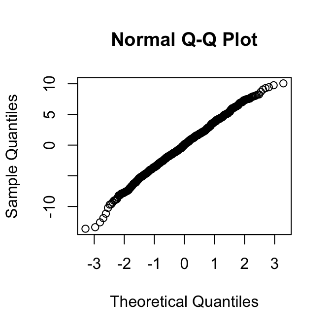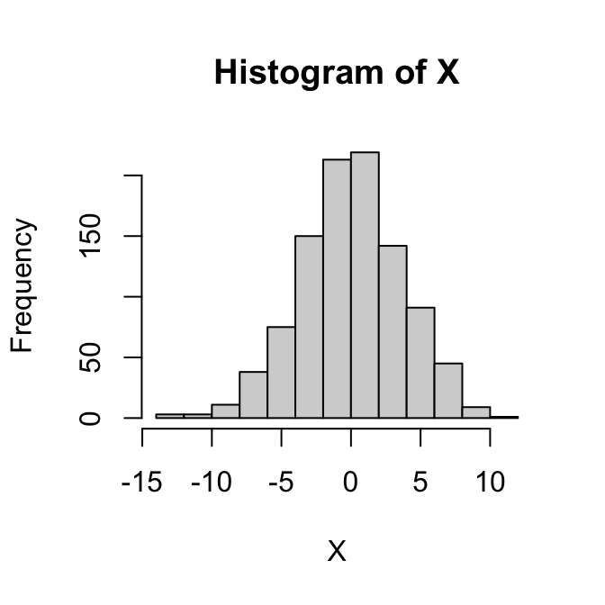 The property says that the samples of \(X\) look normal. A quick histogram and qqplot suggest it does. (Of course, this is not a proof that the property holds; it is just an illustration of the idea.)