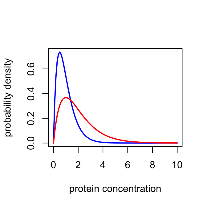 xlab = "protein concentration",ylab = "probability density")