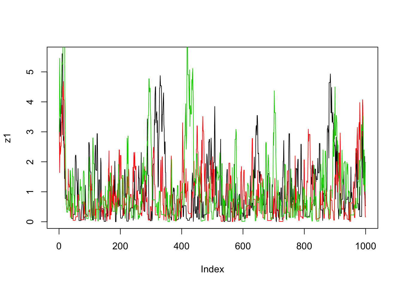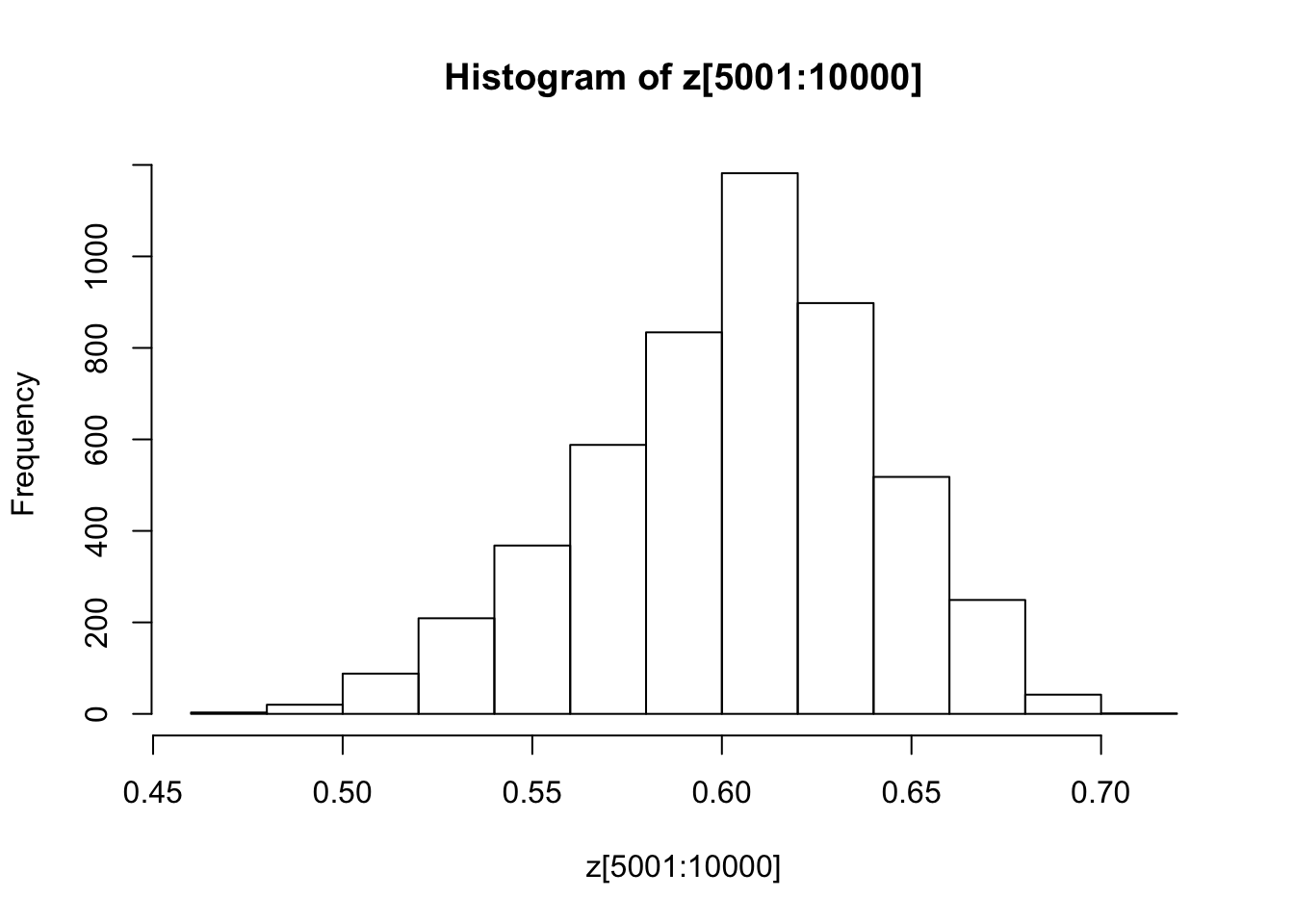 You might also like to discard the first 5000 z’s as “burnin”. Here’s one way in R to select only the last 5000 zs