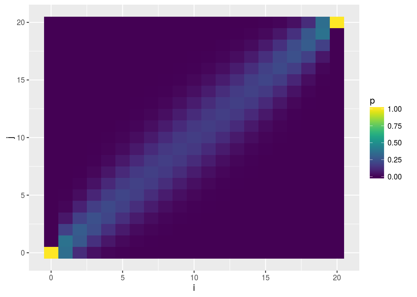 P_df <- bind_rows(P_df, data.frame(i = i, j = j, p = P[i+1, j+1]))