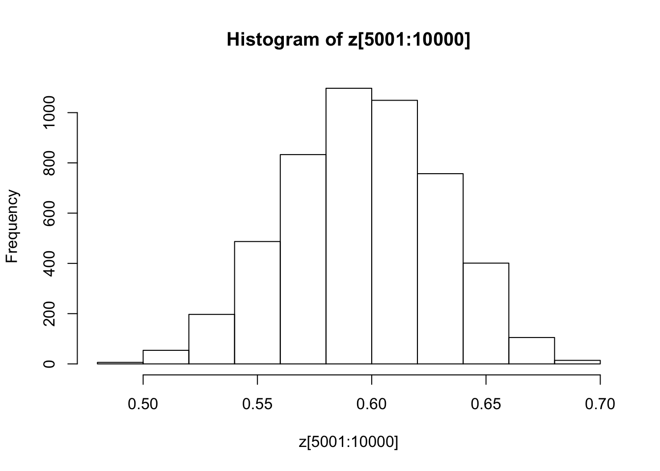 You might also like to discard the first 5000 z’s as “burnin”. Here’s one way in R to select only the last 5000 zs
